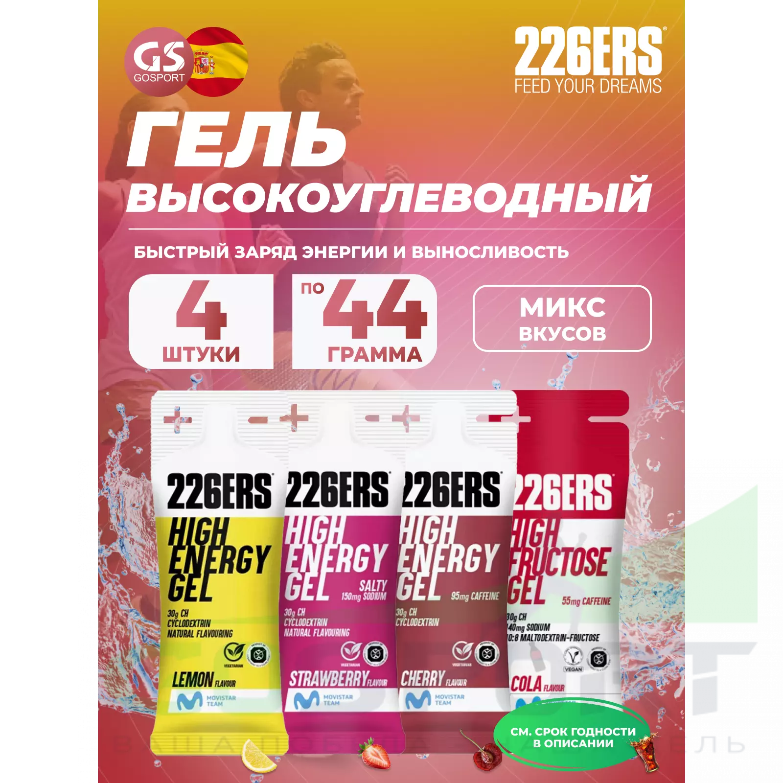 226ERS High Energy Gel + sodium 150 mg 4 x 44 г, Микс 9 — Быстрый заряд энергии и выносливость