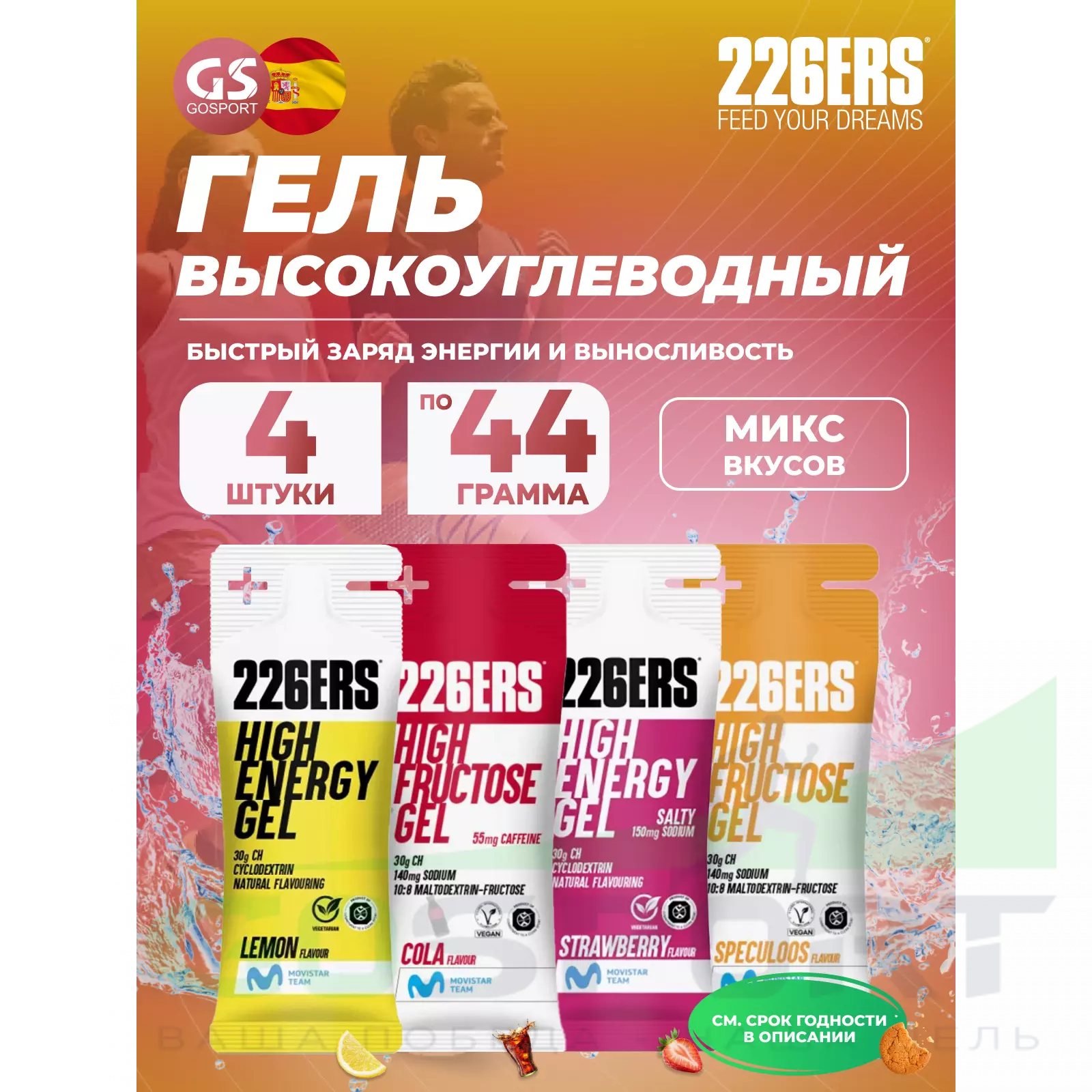 226ERS High Energy Gel + sodium 150 mg 4 x 44 г, Микс 15 — Быстрый заряд энергии и выносливость