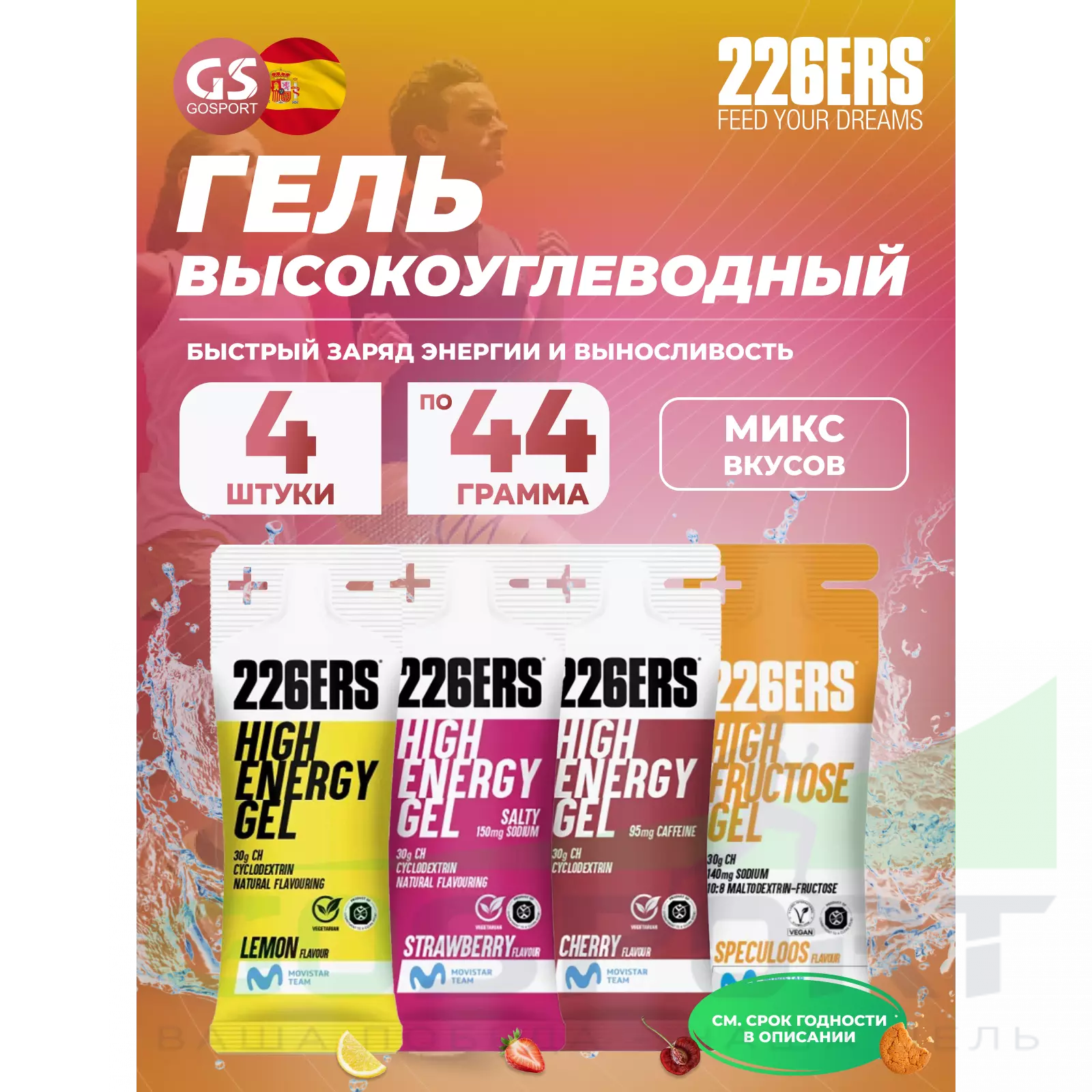 226ERS High Energy Gel + sodium 150 mg 4 x 44 г, Микс 16 — Быстрый заряд энергии и выносливость