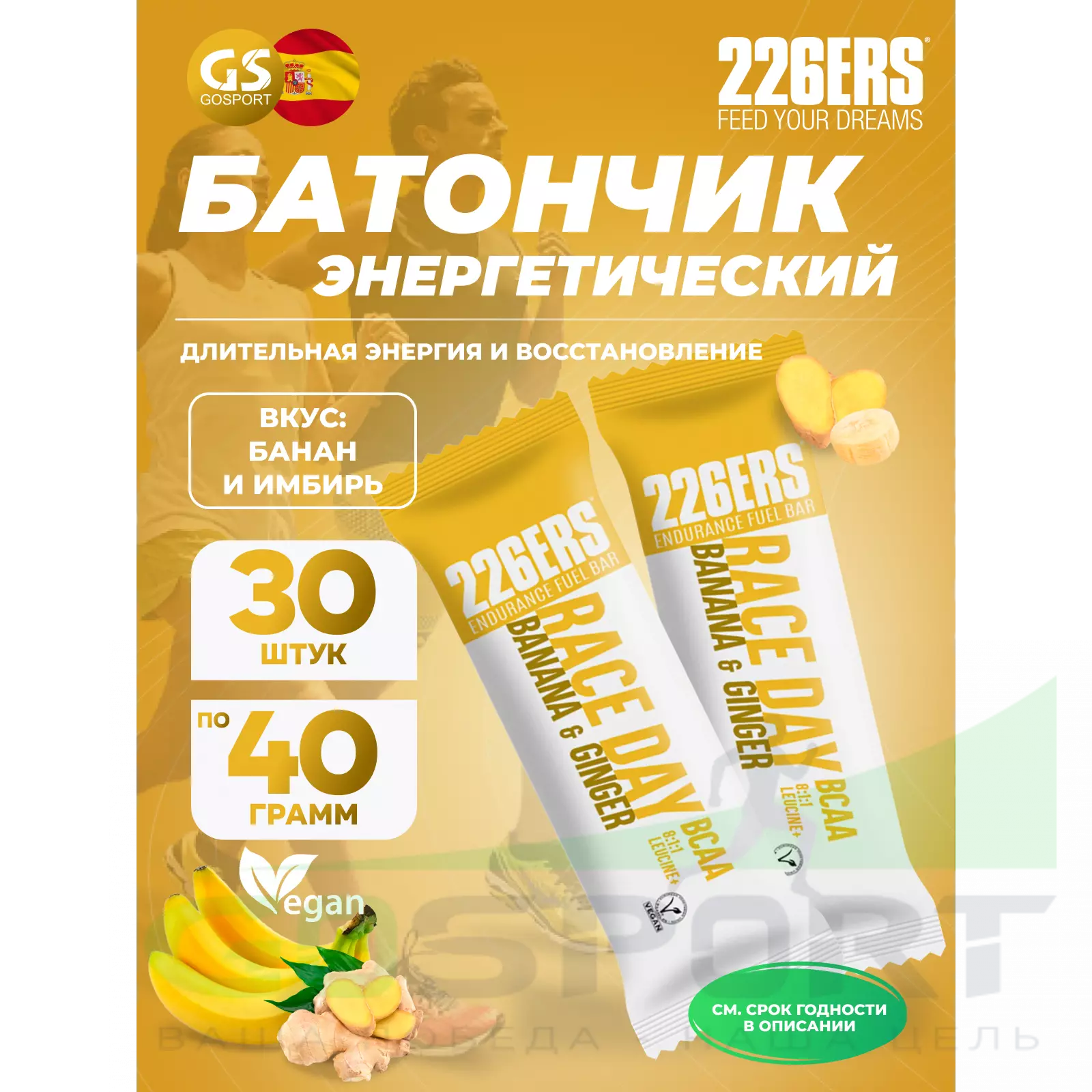 226ERS Race day bar BCAA 30 x 40 г, Банан и имбирь — Быстрый заряд энергии и восстановление
