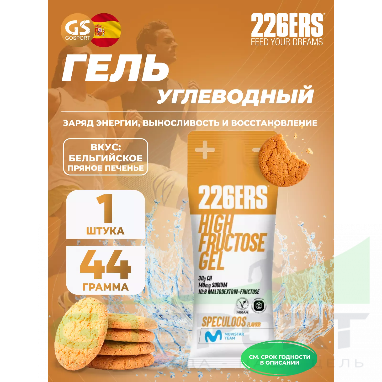 226ERS High Fructose Gel 140 mg 44 г, Бельгийское пряное печенье — Заряд энергии и выносливость