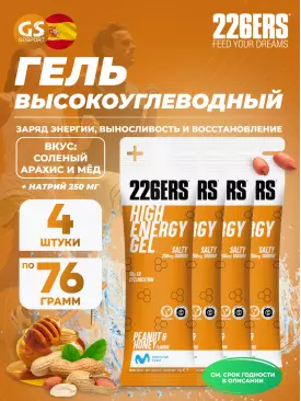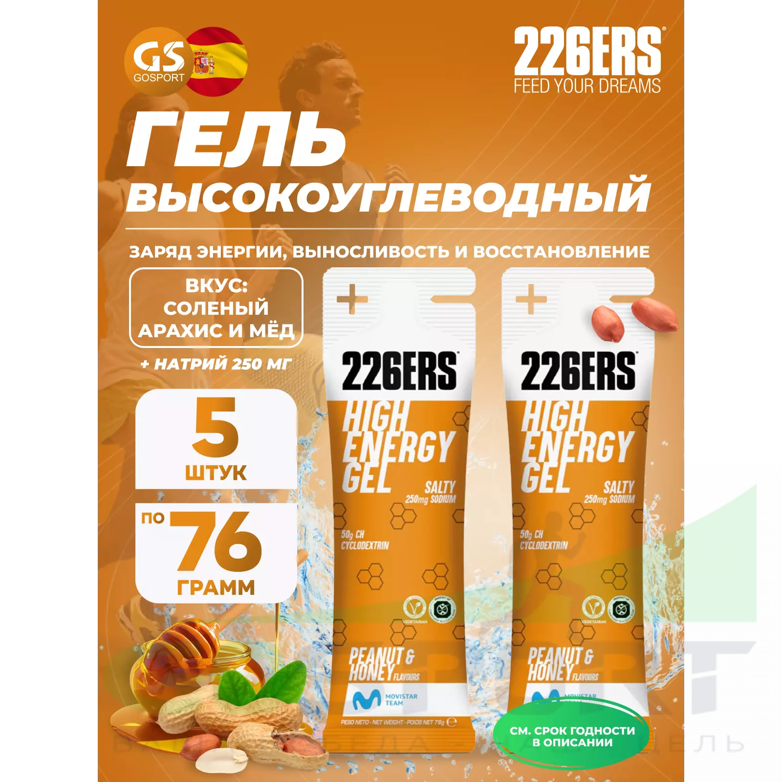 226ERS High Energy Gel + sodium 250 mg 5 x 76 г, Селеный арахис и мёд — Заряд энергии и повышение выносливости