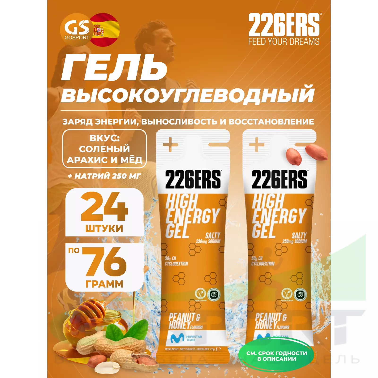 226ERS High Energy Gel + sodium 250 mg 24 x 76 г, Селеный арахис и мёд — Заряд энергии и повышение выносливости