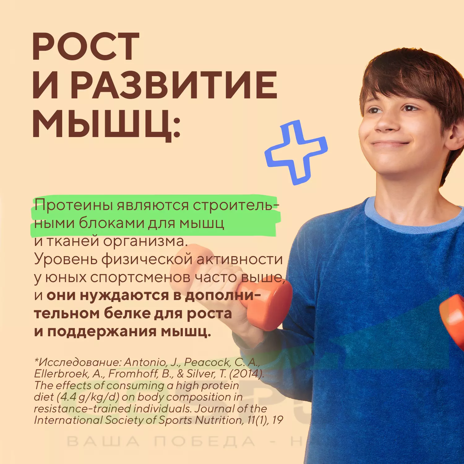 Иммунная поддержка: Протеины играют важную роль в поддержании сильной иммунной системы, что особенно важно для детей, активно занимающихся спортом и подверженных риску инфекций.