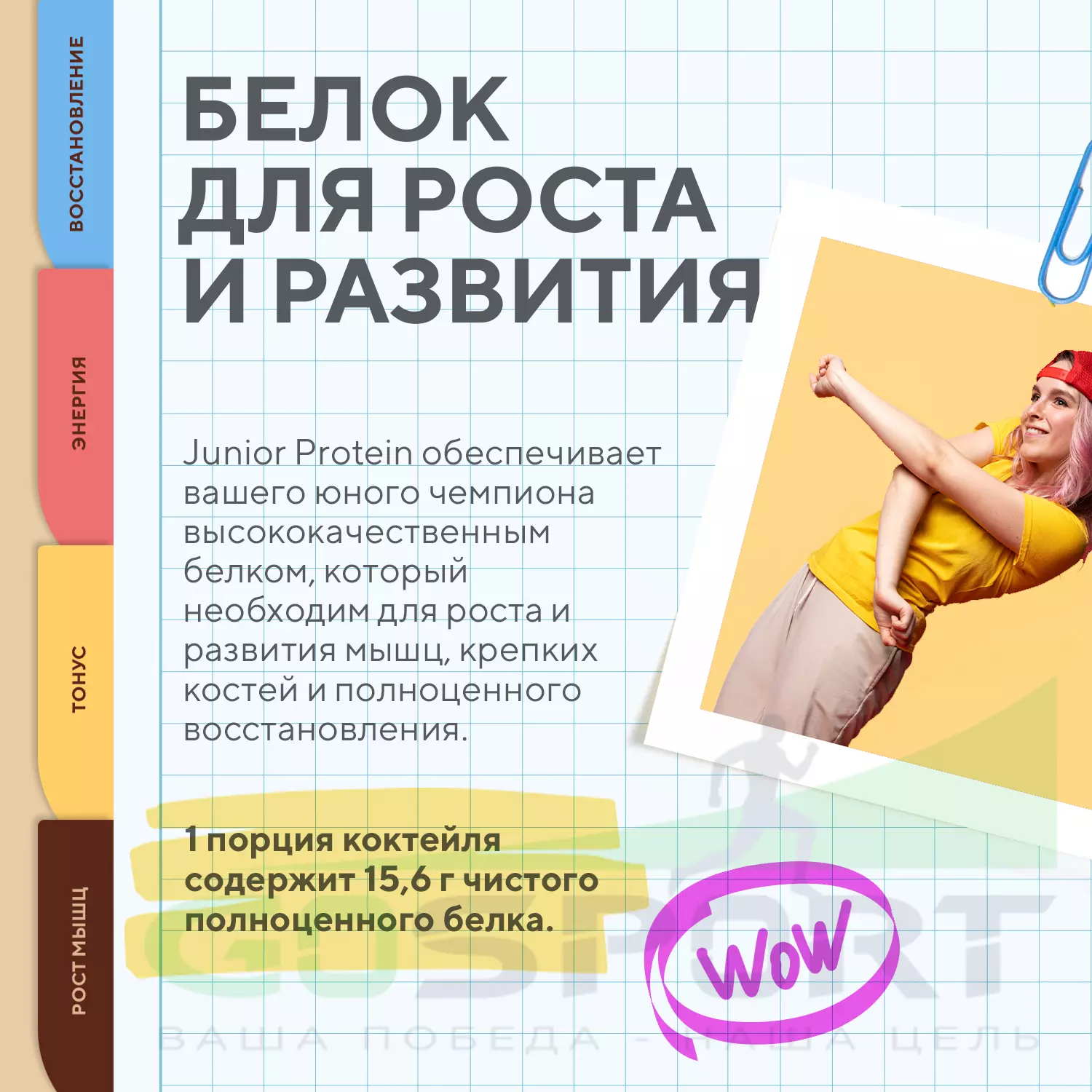 Белок для роста и развития: Junior Protein обеспечивает вашего маленького чемпиона высококачественным белком, который необходим для роста и развития мышц. 1 порция коктейля содержит 15,6 г чистого полноценного белка.