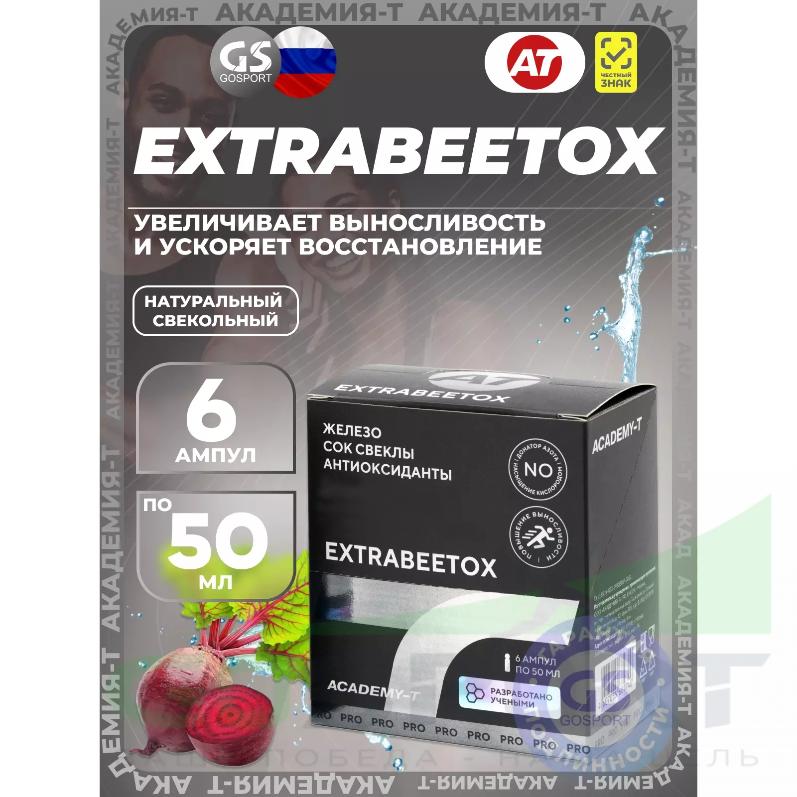 Академия-Т ExtraBeetOx 6 ампул, Натуральный — Увеличивает выносливость и ускоряет восстановление
