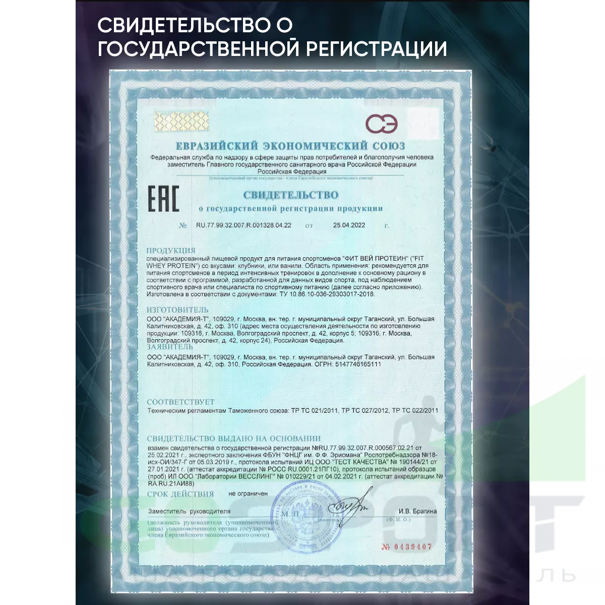 Специализированный пищевой продукт для питания спортсменов «FIT WHEY PROTEIN».