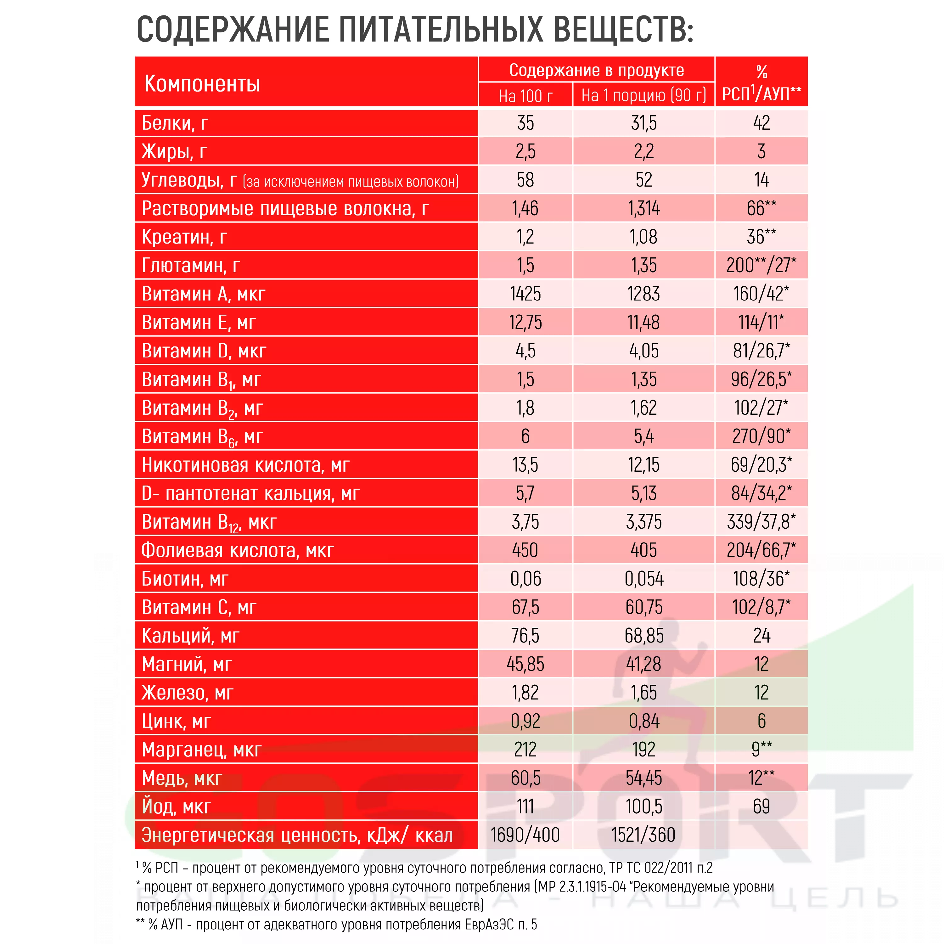 В дни тренировок для приготовления разовой порции смешайте 3 мерные ложки (90 г) продукта с 400-450 мл воды или молока. Принимайте 1-2 раза в день: утром - во время завтрака и/или в течение 30 минут после физических нагрузок.