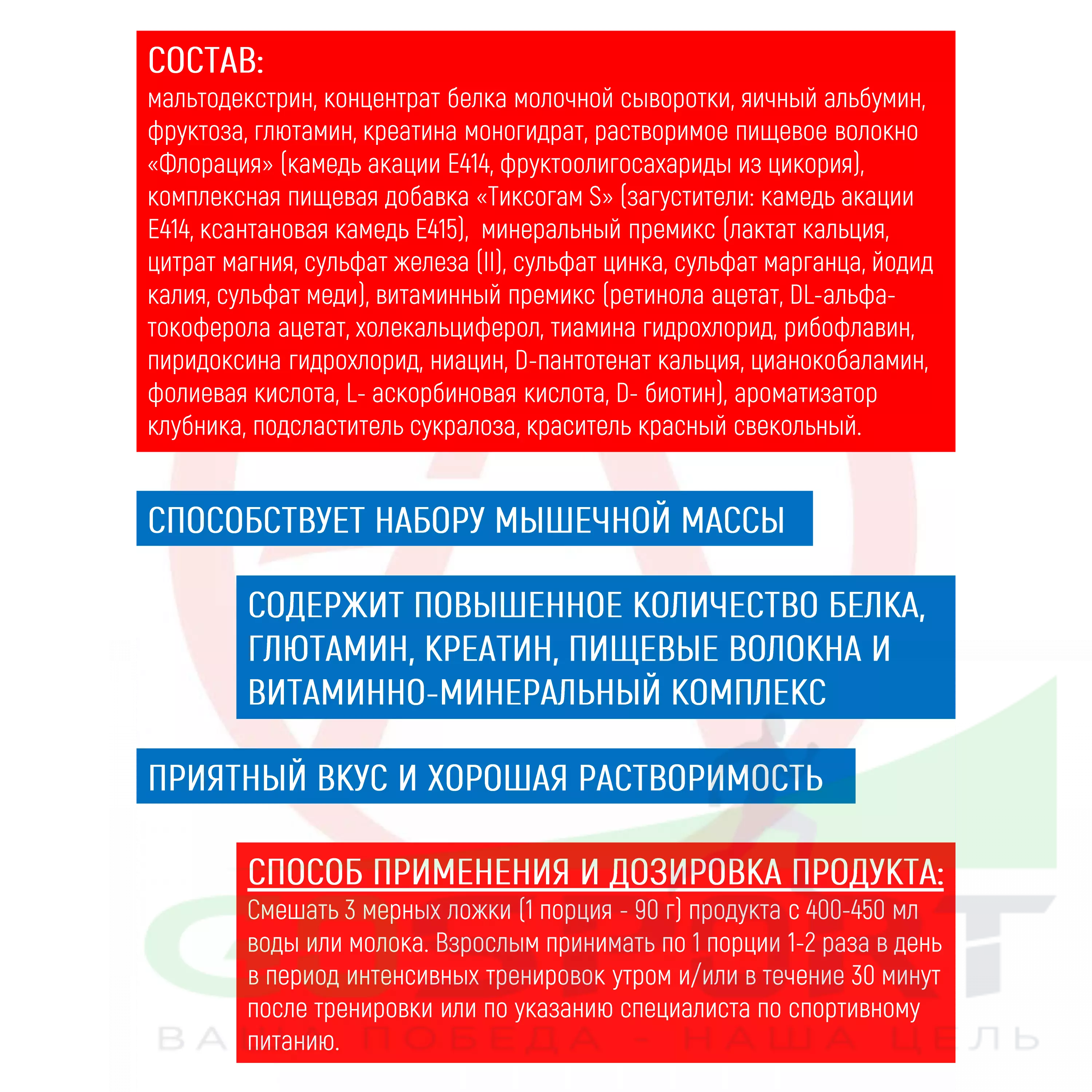Академия-Т Sportein Gainer 2500 г, Клубника — Набор мышечной массы, сила и выносливость