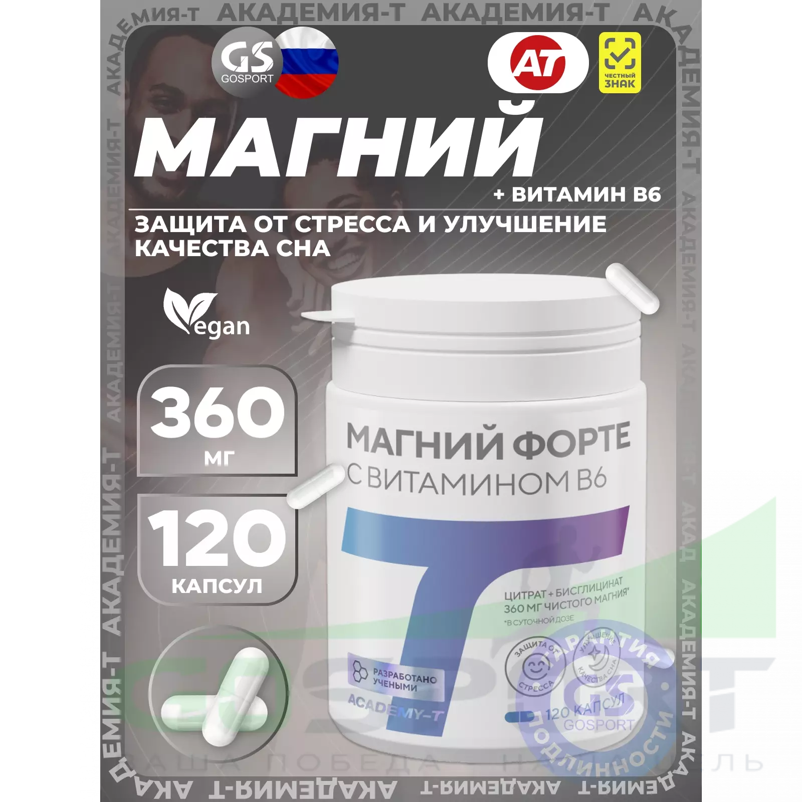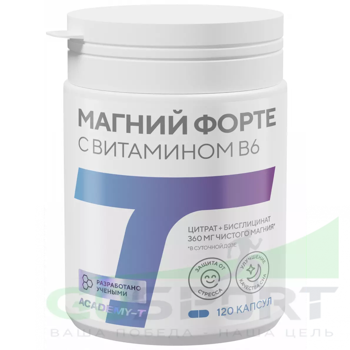 Академия-Т Магний форте 360 мг с витамином B6 120 веган капсул — Защита от стресса и улучшение качества сна