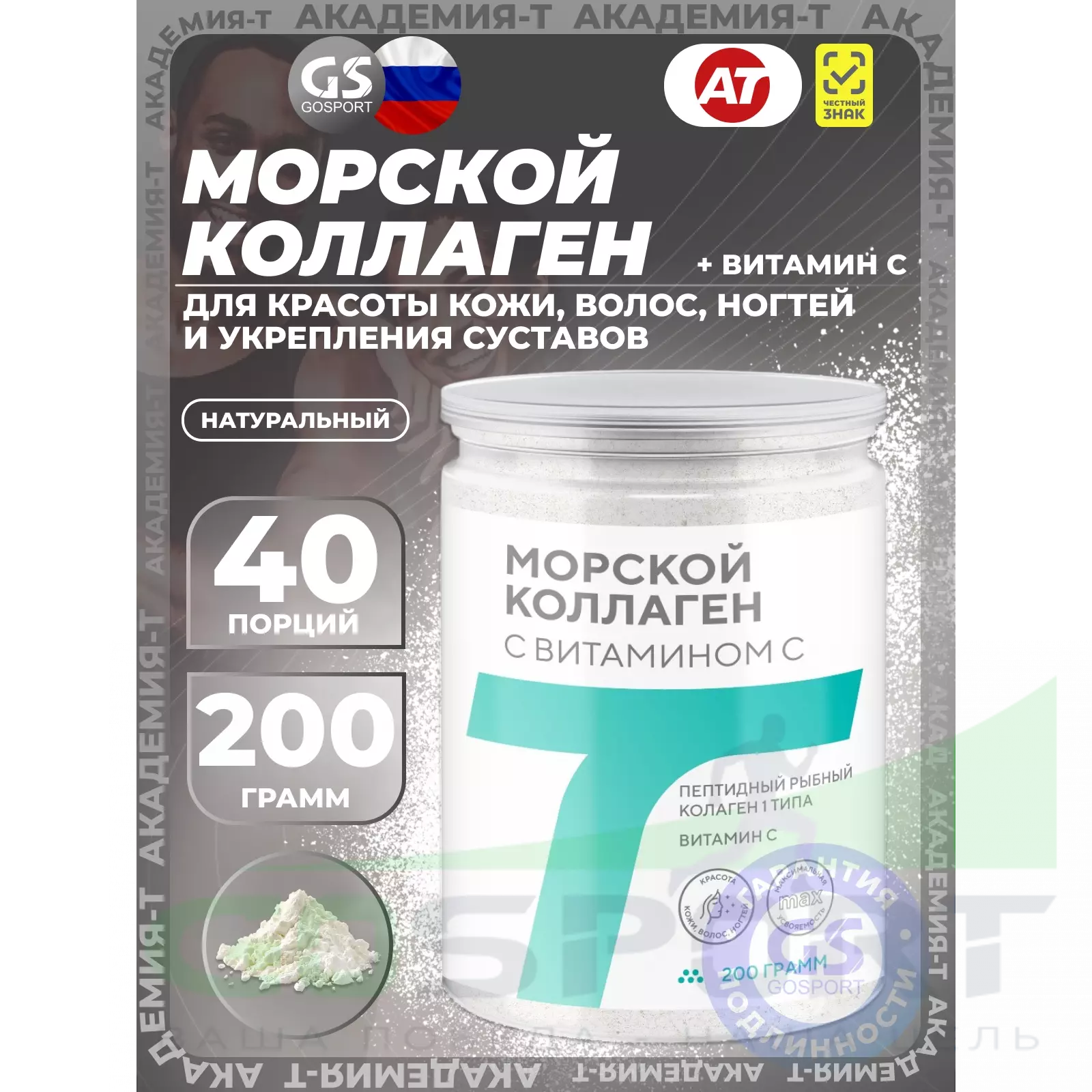 Академия-Т Морской коллаген с витамином C 200 г, Натуральный — Для красоты кожи, волос, ногтей и укрепления суставов