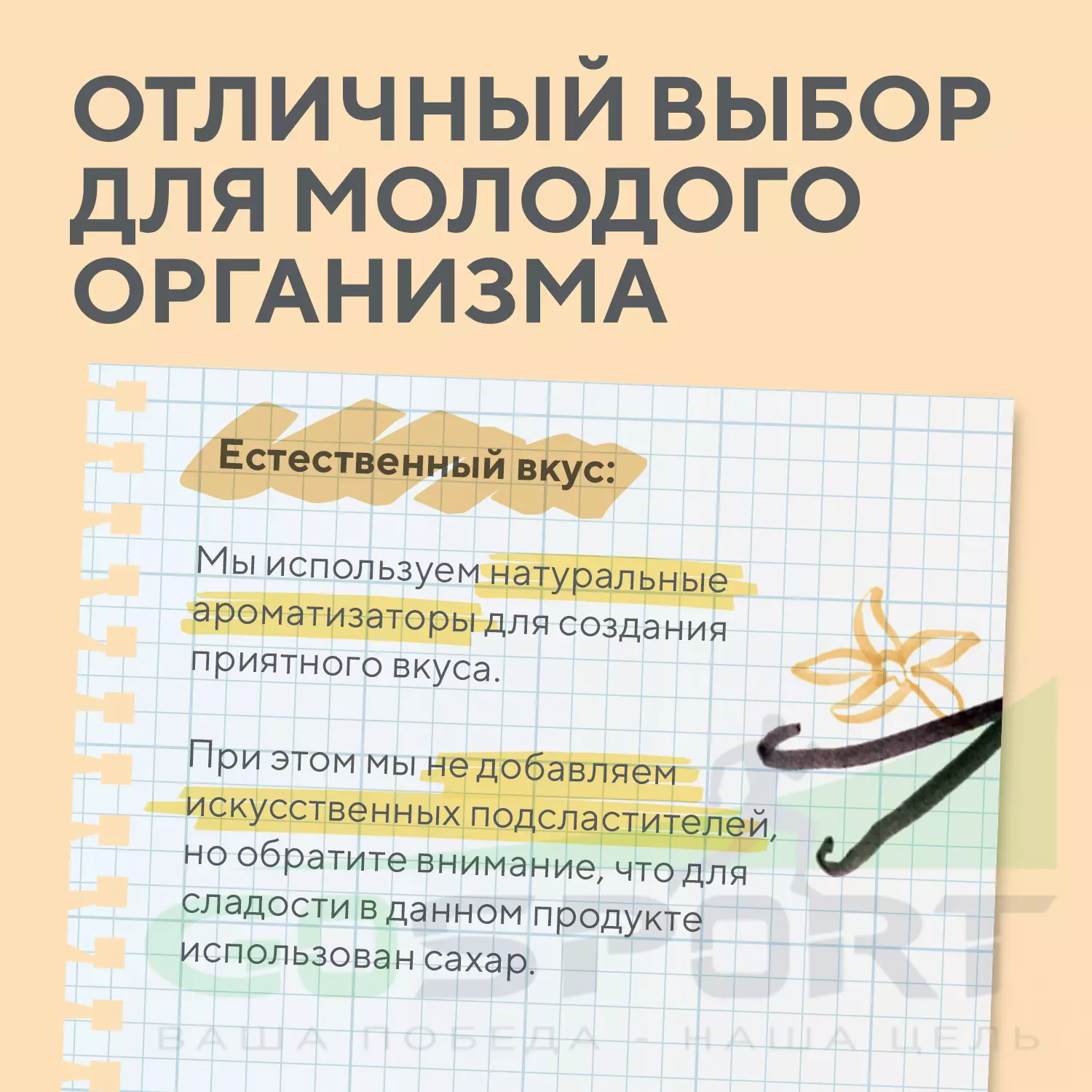 Естественный вкус: Junior Gainer предлагается в разнообразных вкусах, которые придутся по вкусу даже самым требовательным молодым атлетам. Мы используем натуральные ароматизаторы для создания приятного вкуса. При этом мы не используем искусственных подсластителей, но обратите внимание что для сладости в данном продукте использован сахар.