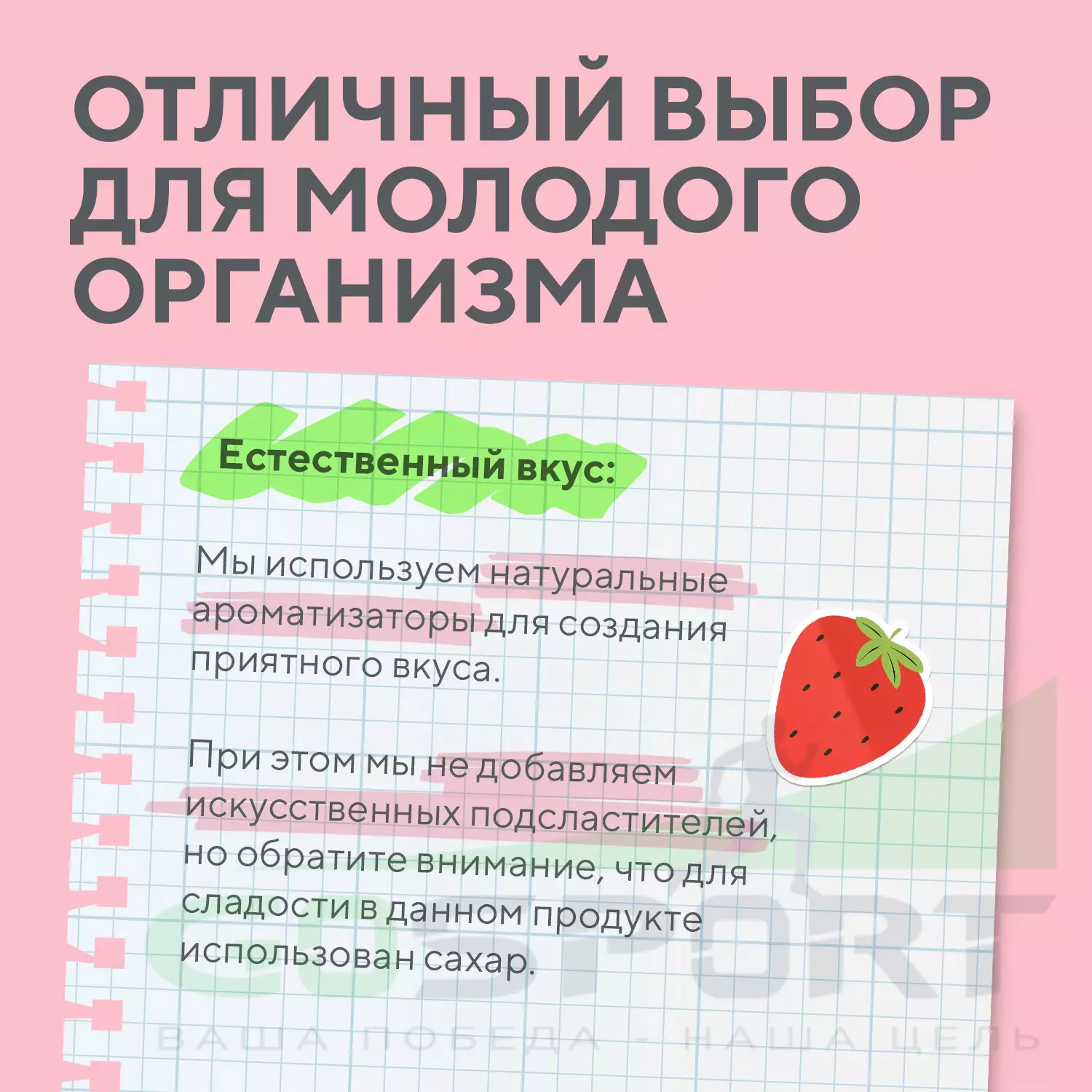 Ингредиенты: сахар мелкокристаллический, концентрат белка молочной сыворотки, мальтодекстрин, комплексная пищевая добавка (загустители: гуммиарабик, ксантановая камедь), ароматизатор пищевой натуральный «со вкусом клубники», витаминный премикс (ретинола ацетат, D-альфа-токоферола ацетат, холекальциферол (D3), тиамина гидрохлорид, рибофлавин, пиридоксина гидрохлорид, никотиновая кислота, D-пантотенат кальция, цианокобаламин, фолиевая кислота, L-аскорбиновая кислота, D-биотин).