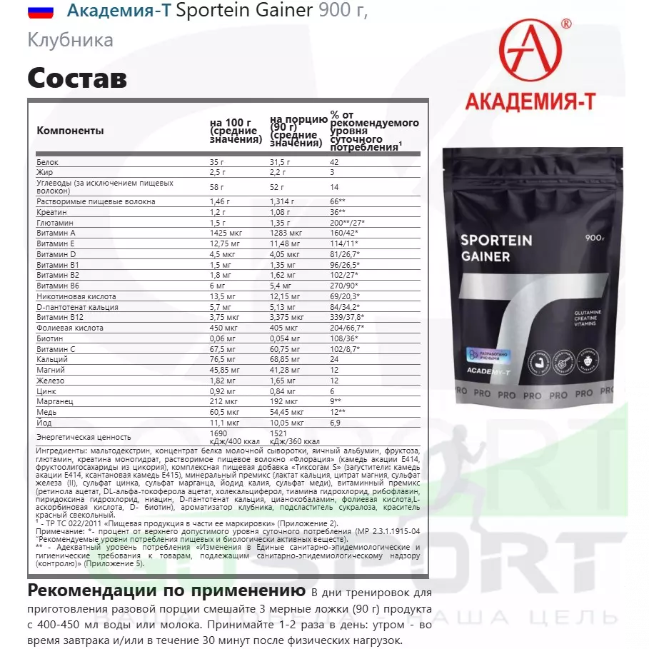 Состав Академия-Т Sportein Gainer