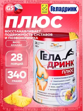 Ингредиенты: гидролизат коллагена, глюкозамина сульфат, хондроитина сульфат, витаминно-минеральный-белковый комплекс (белки молочной сыворотки «Остеол», карбонат кальция, оксид магния, сульфат меди, сульфат марганца, L-аскорбиновая кислота, DL-альфа-токоферола ацетат, D-биотин, холекальциферол, пиридоксина гидрохлорид, носитель мальтодекстрин), оболочка капсулы (желатин, краситель диоксид титана).