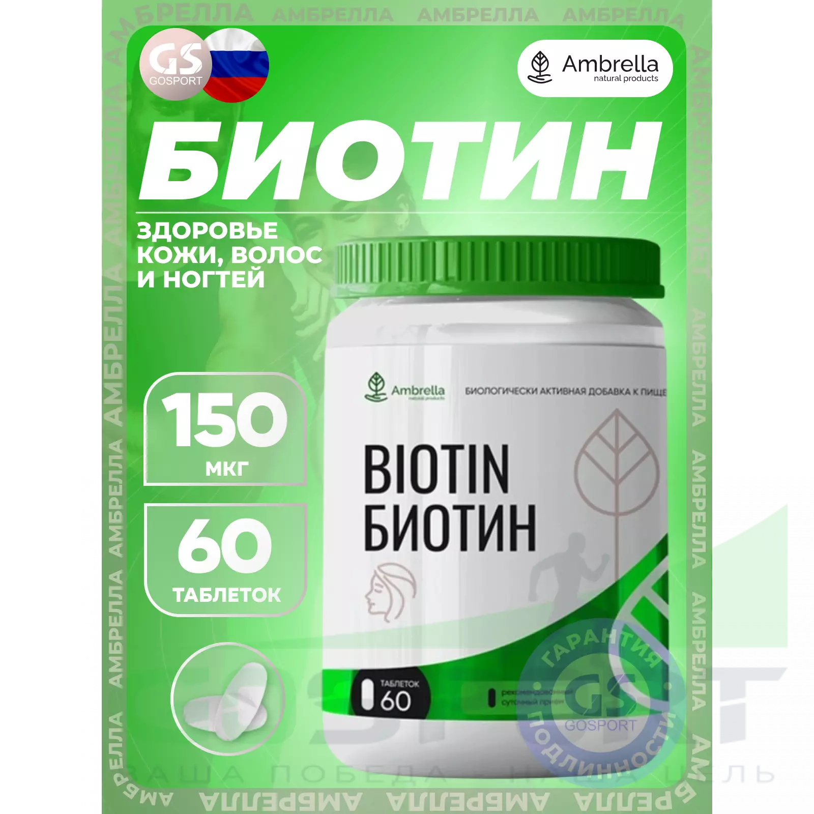 Амбрелла Биотин 150 мкг 60 таблеток — Здоровье кожи, волос и ногтей