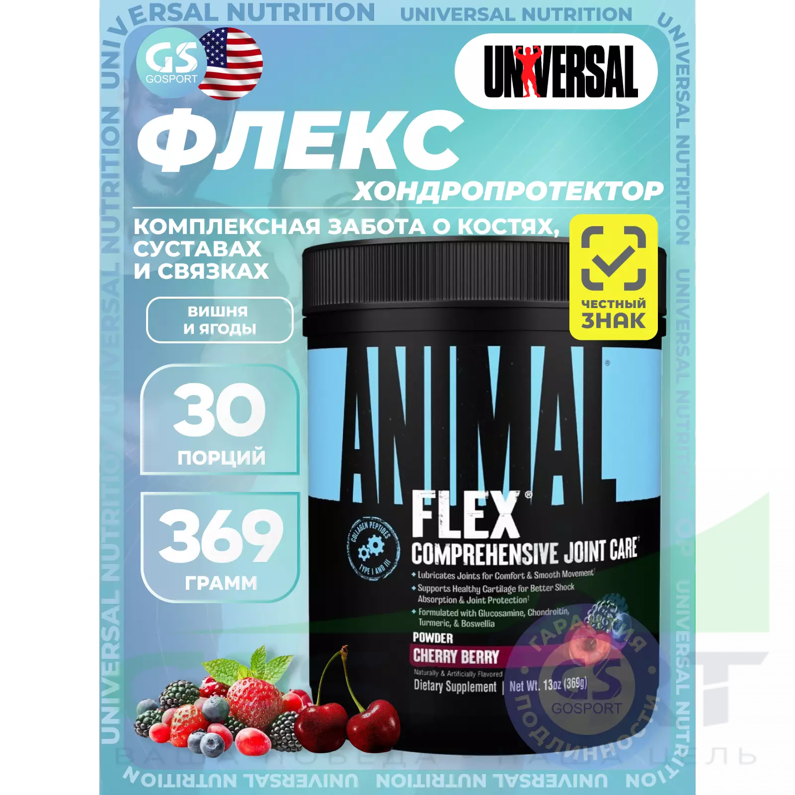 UNIVERSAL NUTRITION ANIMAL FLEX POWDER 369 г, Вишня и ягоды — Для поддержания здоровья суставов и связок