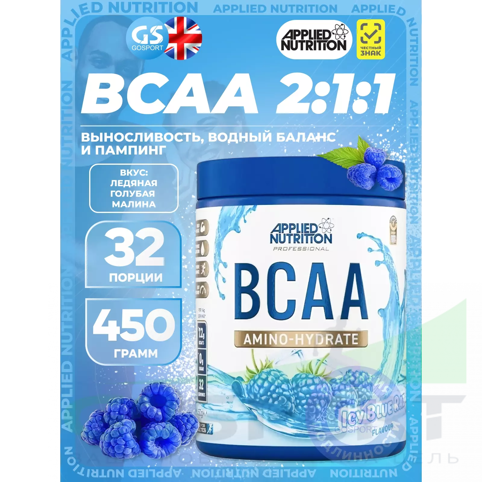APPLIED NUTRITION BCAA Amino Hydrate 450 г, Ледяная голубая малина — Выносливость, водный баланс и пампинг