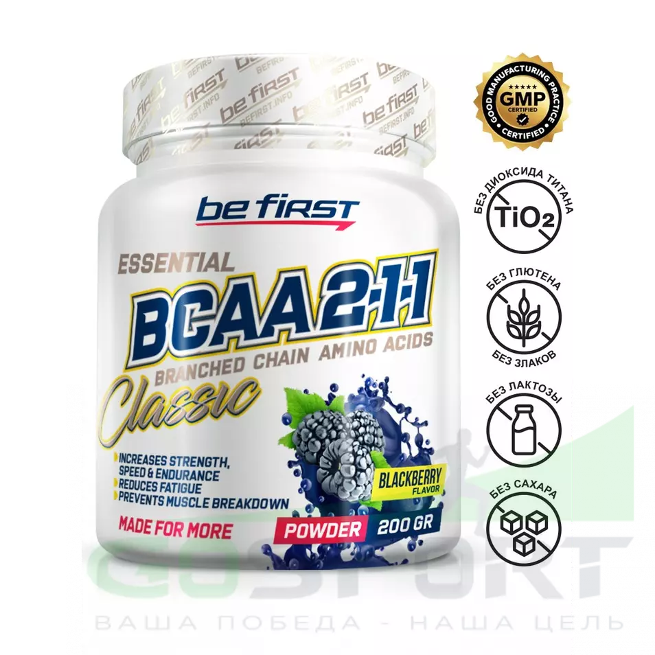 Be First BCAA Classic Powder 2:1:1 200 г, Ежевика — Рост мышц, выносливость и восстановление
