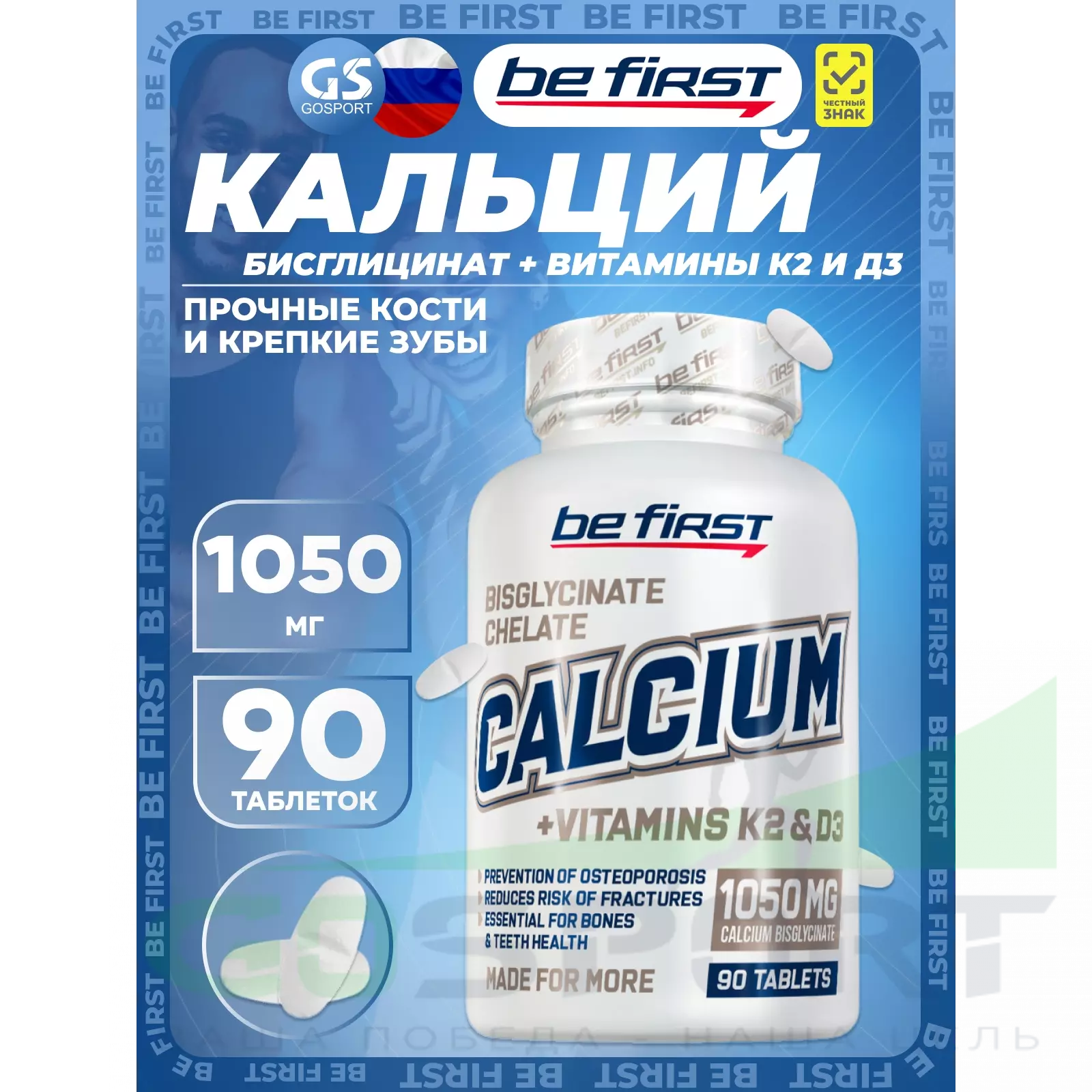 Описание Be First Calcium bisglycinate chelate 1050 mg + K2 + D3