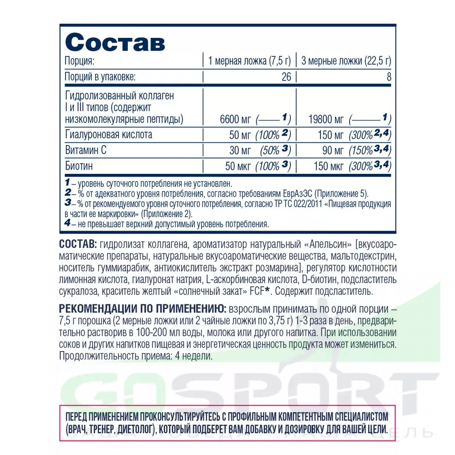 | Гидролизованный коллаген I и III типов | 5300 мг |