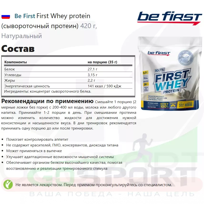 Описание Be First First Whey protein (сывороточный протеин)