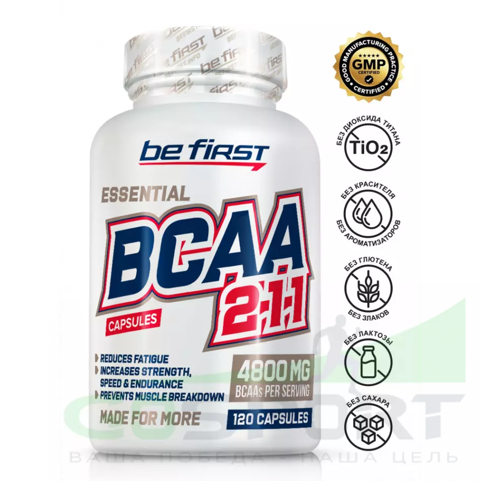 Be First BCAA 2:1:1 Capsules - комплекс из 3 незаменимых аминокислот: L-лейцин, L-изолейцин, L-валин в классическом соотношении 2:1:1 в удобной для приема капсулированной форме.