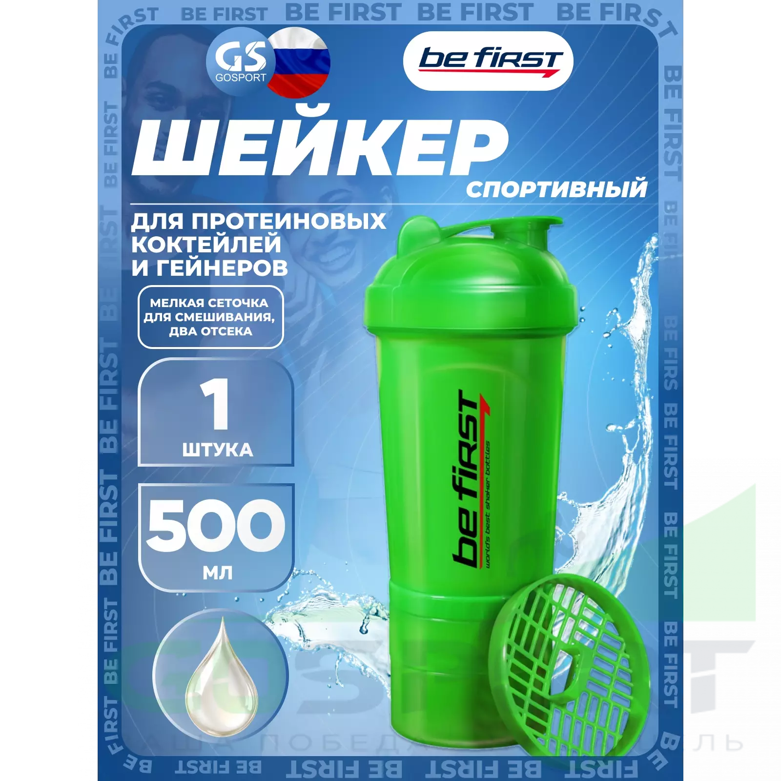 Спортивный шейкер Be First 500 мл 3-в-1 подойдет от аминокислотных до протеиновых коктейлей и гейнеров, которые помогут Вам подготовиться к тренировке, пополнив запасы аминокислот, а также быстрее восстановить силы после нагрузки. Сетка с небольшими узкими отверстиями способствует лучшему смешиванию однородного коктейля без комочков. Крышка на резьбе, плотно закрывающийся питьевой носик, отсутствующие внутри выступы – все продумано для более удобного использования шейкера.