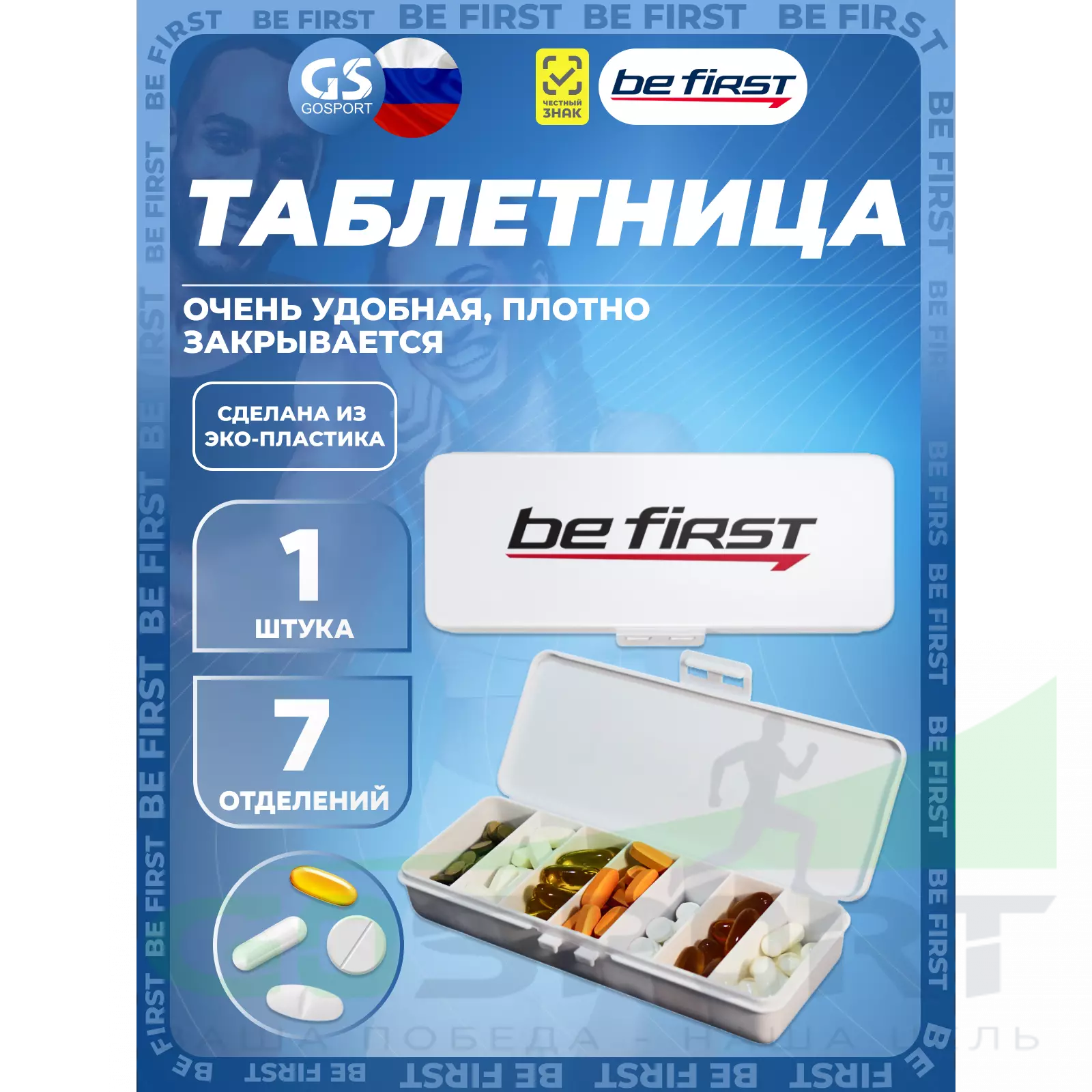 Таблетница компании Be First является очень удобным аксессуаром для всех, кто принимает различные препараты — витамины, лекарства, капсулированные добавки и т.п. В таблетнице их удобно взять с собой на тренировку или в поездку, зная, что ничего не рассыплется, не потеряется и не перепутается. Все таблетницы делаются из экологичного пищевого пластика BPA & DEHP FREE. Данная таблетница имеет внутри 7 отделений — можно взять 7 препаратов, или разделить один на 7 приемов, к примеру, по дням недели. Имеются черные, белые и прозрачные таблетницы. Крышка закрывается плотно и язычок удерживается двумя выступами, что исключает случайное открывание.