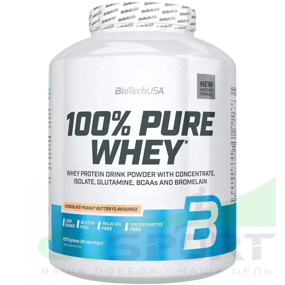 BioTechUSA 100% Pure Whey 2270 г, Шоколадно-арахисовая паста — Рост мышц, энергия, быстрое восстановление