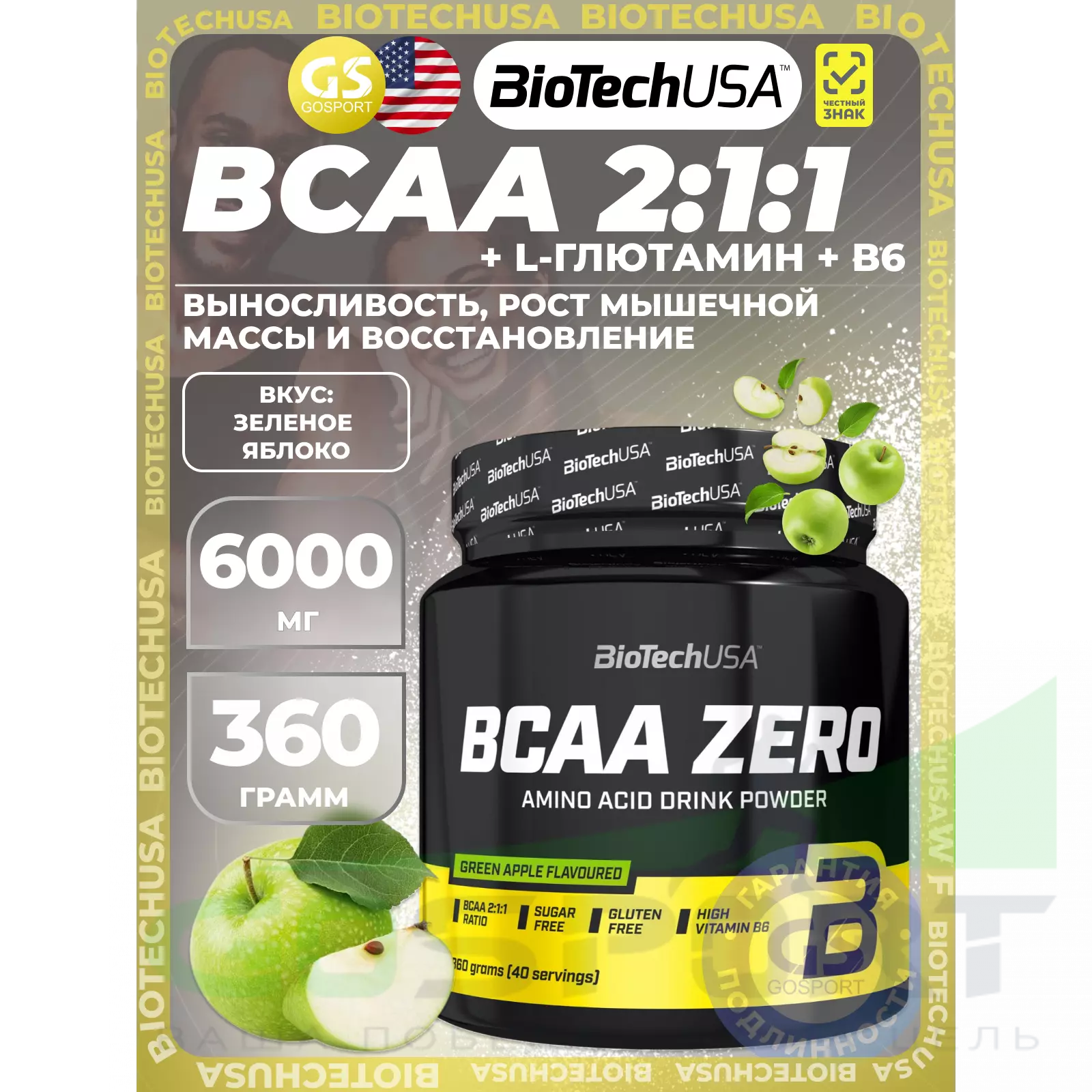 BioTechUSA BCAA Zero 2:1:1 360 г, Зеленое яблоко — Выносливость, рост мышечной массы и восстановление
