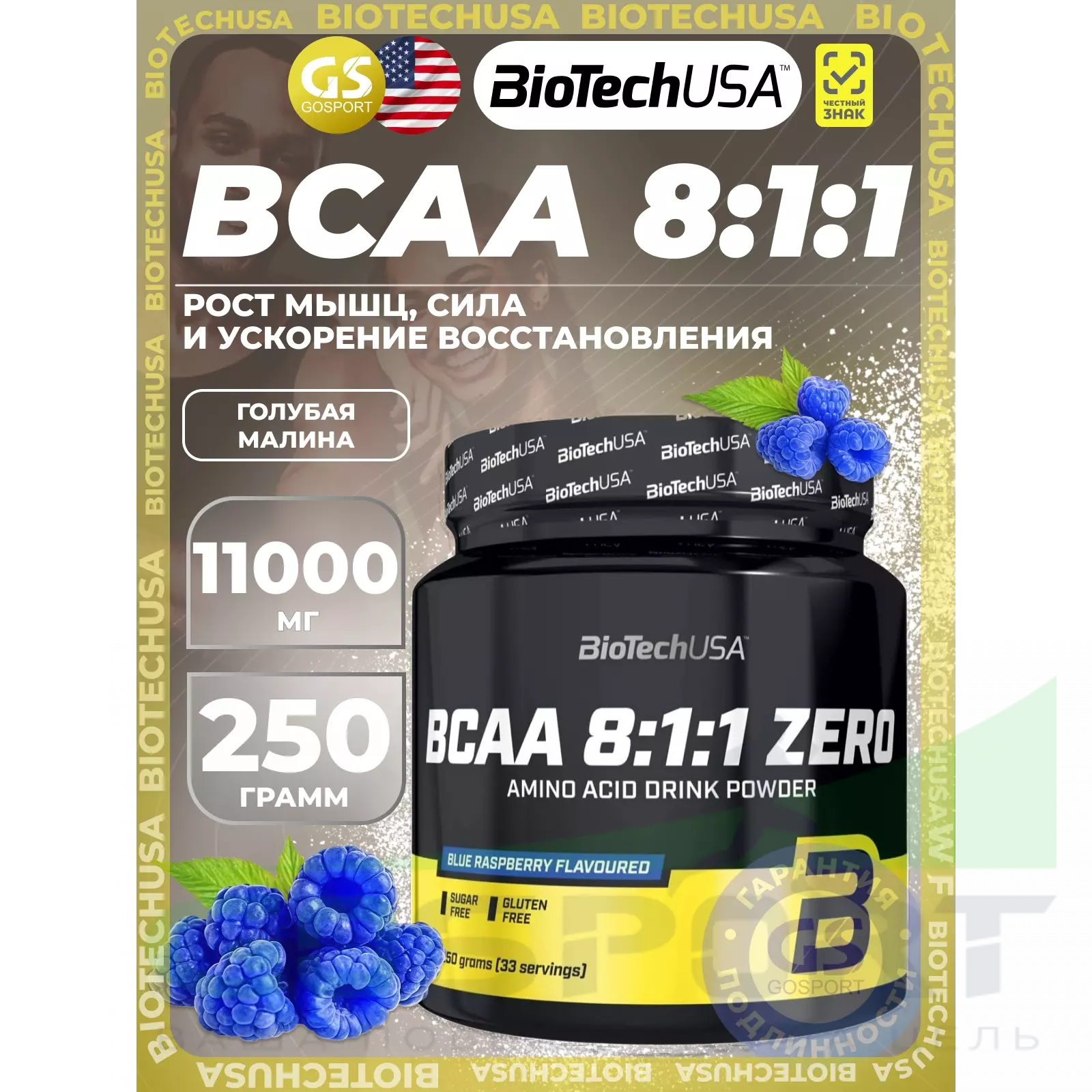 BCAA 8:1:1 Zero 250 г, Голубая малина