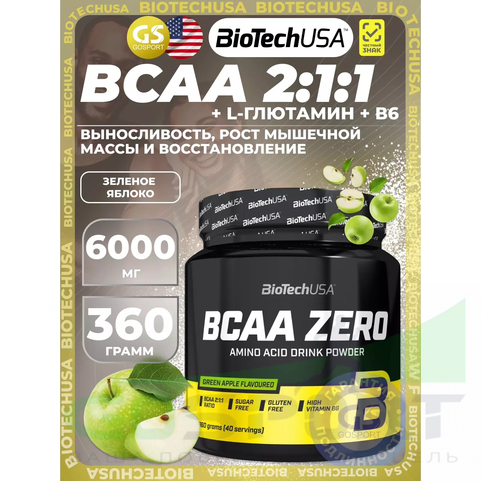 BioTechUSA BCAA Zero 2:1:1 360 г, Зеленое яблоко — Выносливость, рост мышечной массы и восстановление