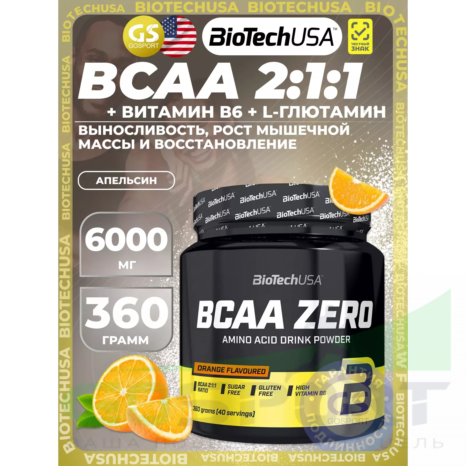 BioTechUSA BCAA Zero 2:1:1 360 г, Апельсин — Выносливость, рост мышечной массы и восстановление