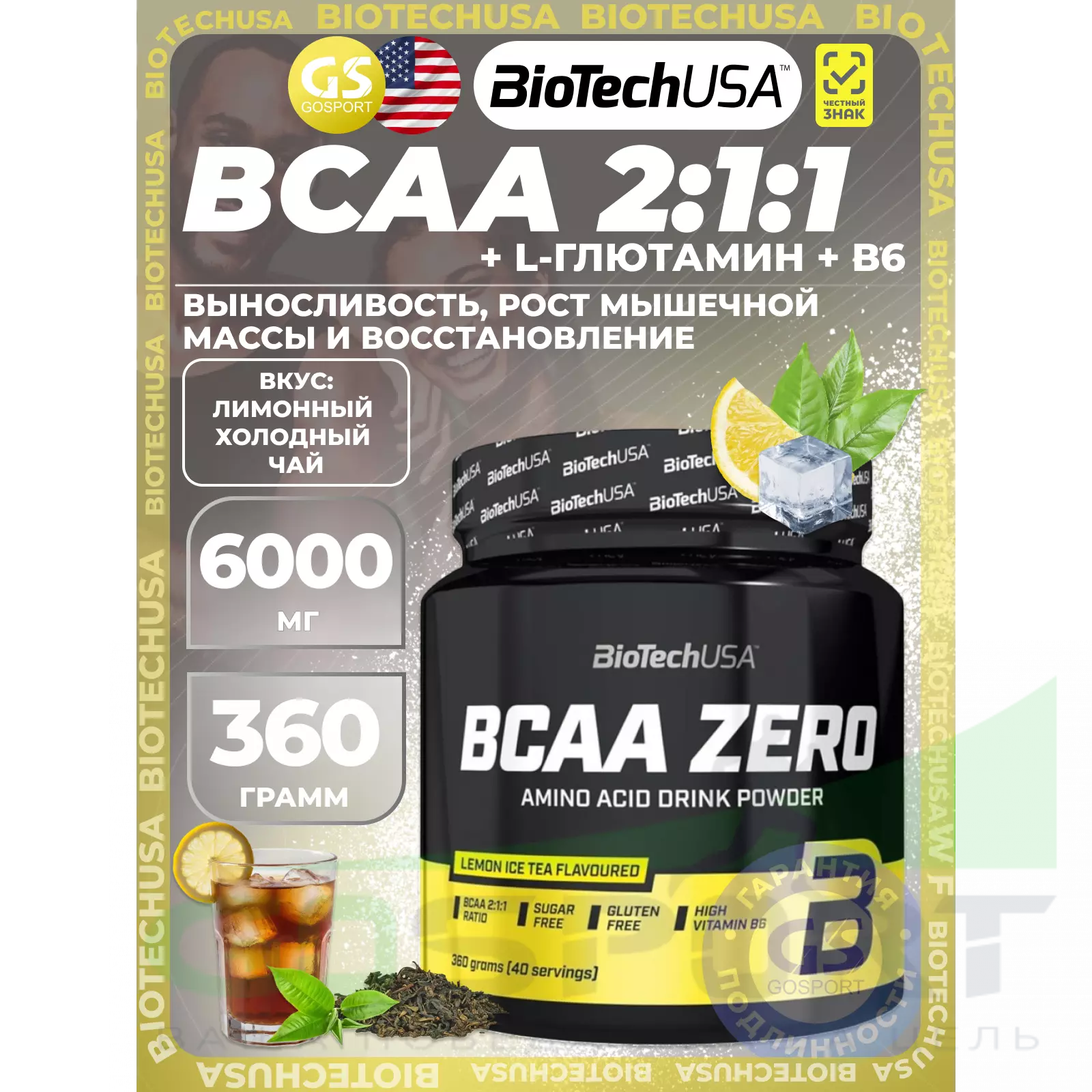 BioTechUSA BCAA Zero 2:1:1 360 г, Лимонный холодный чай — Выносливость, рост мышечной массы и восстановление