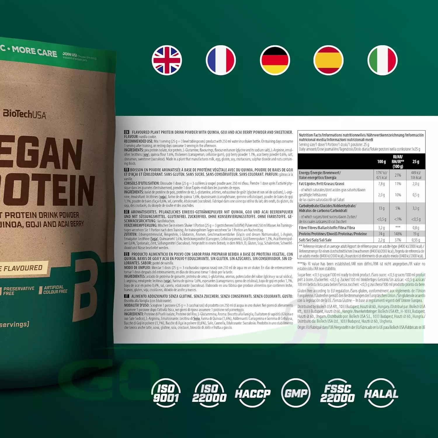 Как и все продукты BioTechUSA, Vegan Protein изготовлен из безопасных для здоровья и тщательно отобранных ингредиентов.