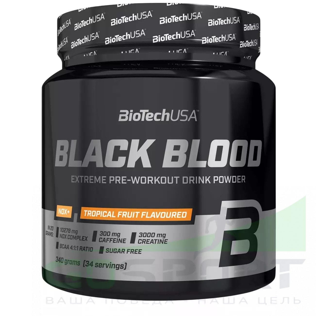 BioTechUSA Black blood Nox+ 340 г, Тропические фрукты — Повышение энергии, концентрации и выносливости