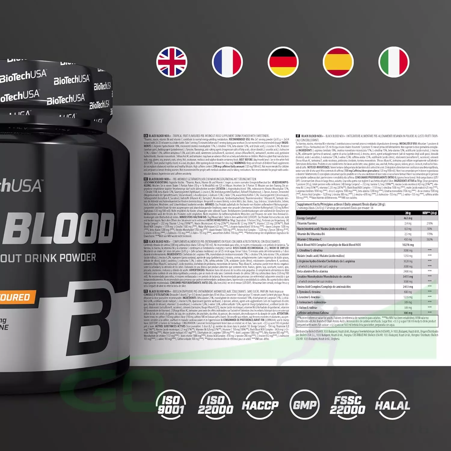 BioTechUSA Black blood Nox+ 340 г, Тропические фрукты — Повышении энергии, концентрации и выносливости