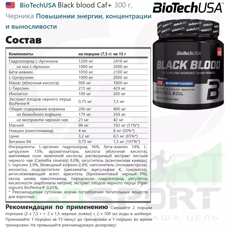 Почему выбирают Pre-Workout Black Blood CAF+?