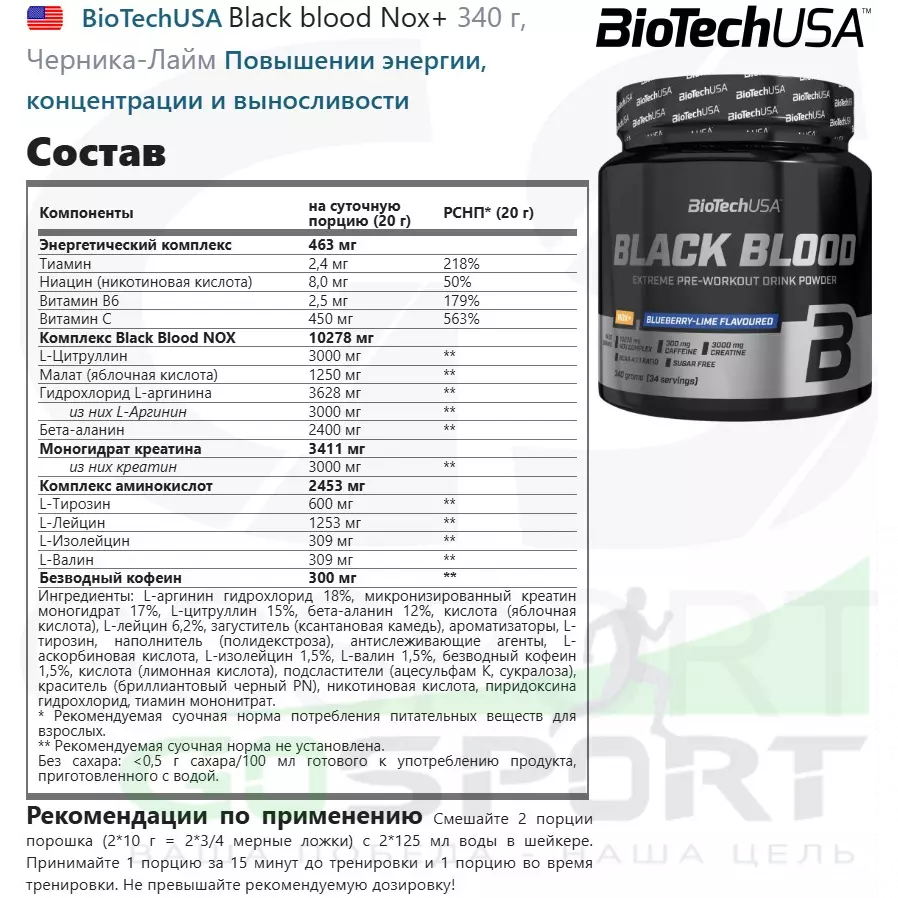 Таким образом, Black Blood CAF+ подходит для любого вида физической активности, где важны энергия, выносливость и концентрация.