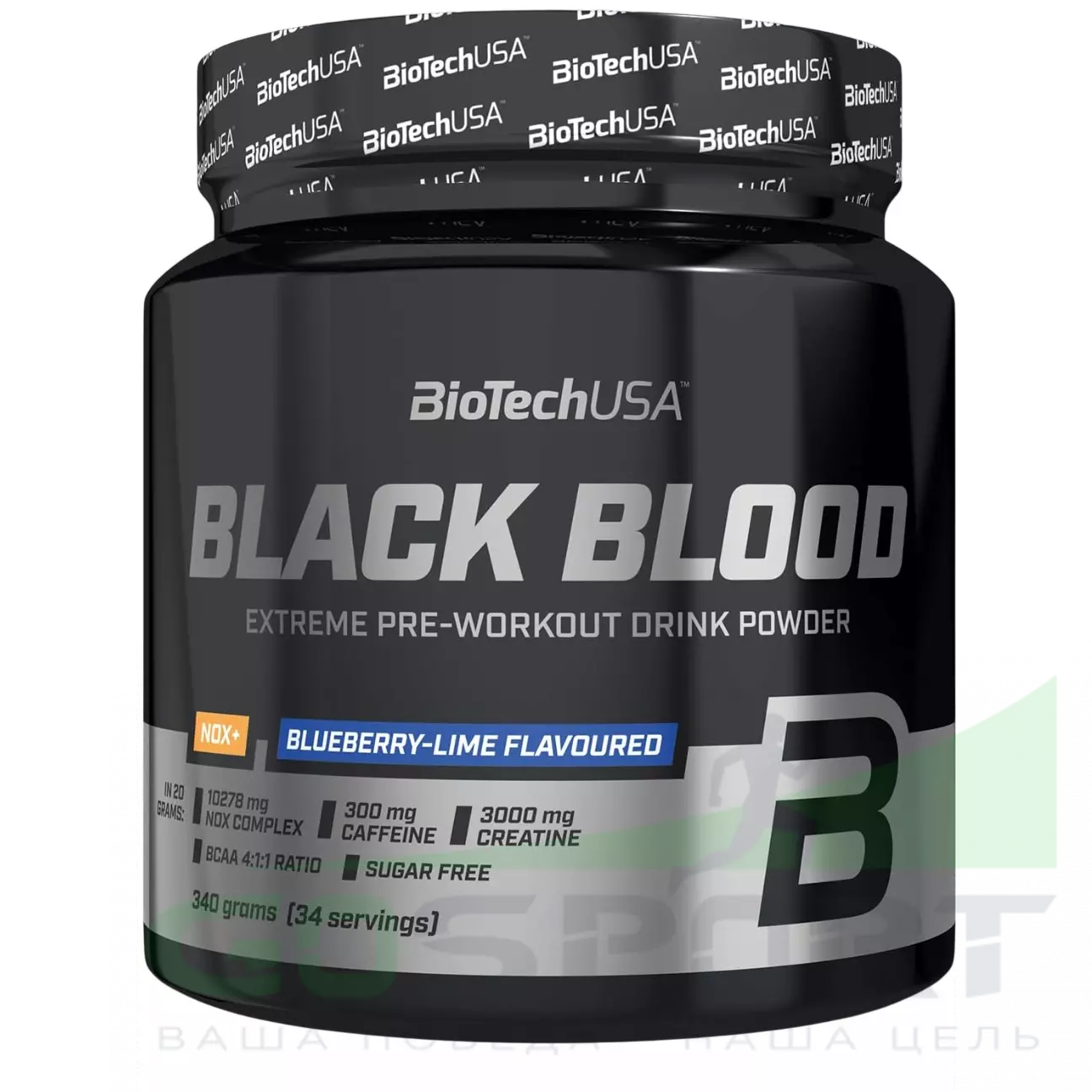 BioTechUSA Black blood Nox+ 340 г, Черника-Лайм — Повышение энергии, концентрации и выносливости