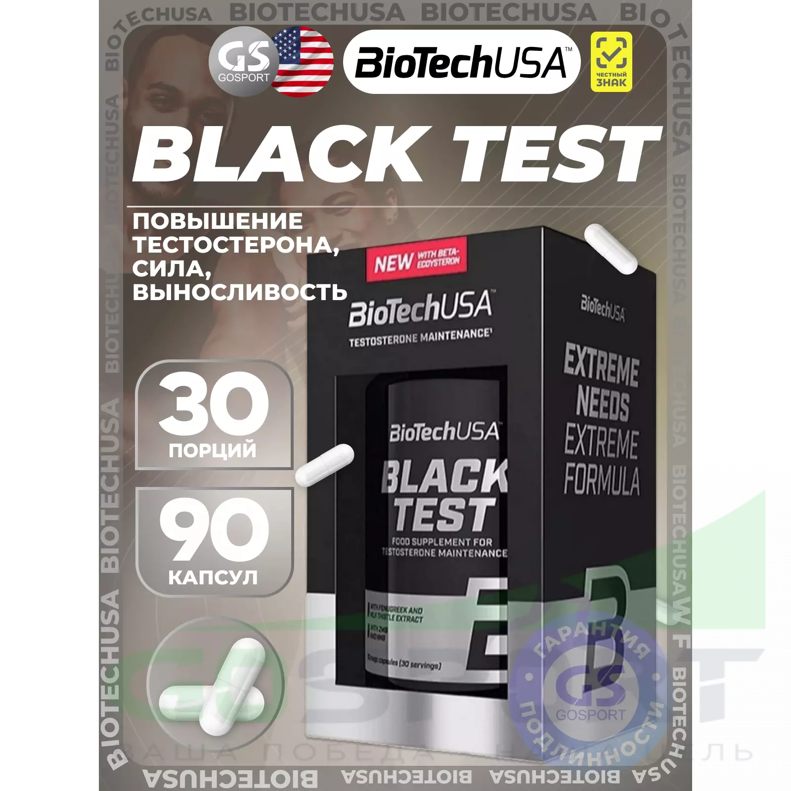BioTechUSA Black Test — это комплексная добавка, разработанная специально для мужчин, которая поддерживает нормальный уровень тестостерона в крови, способствует регуляции гормональной активности и нормализует энергетический обмен без использования гормонов и прогормонов.
