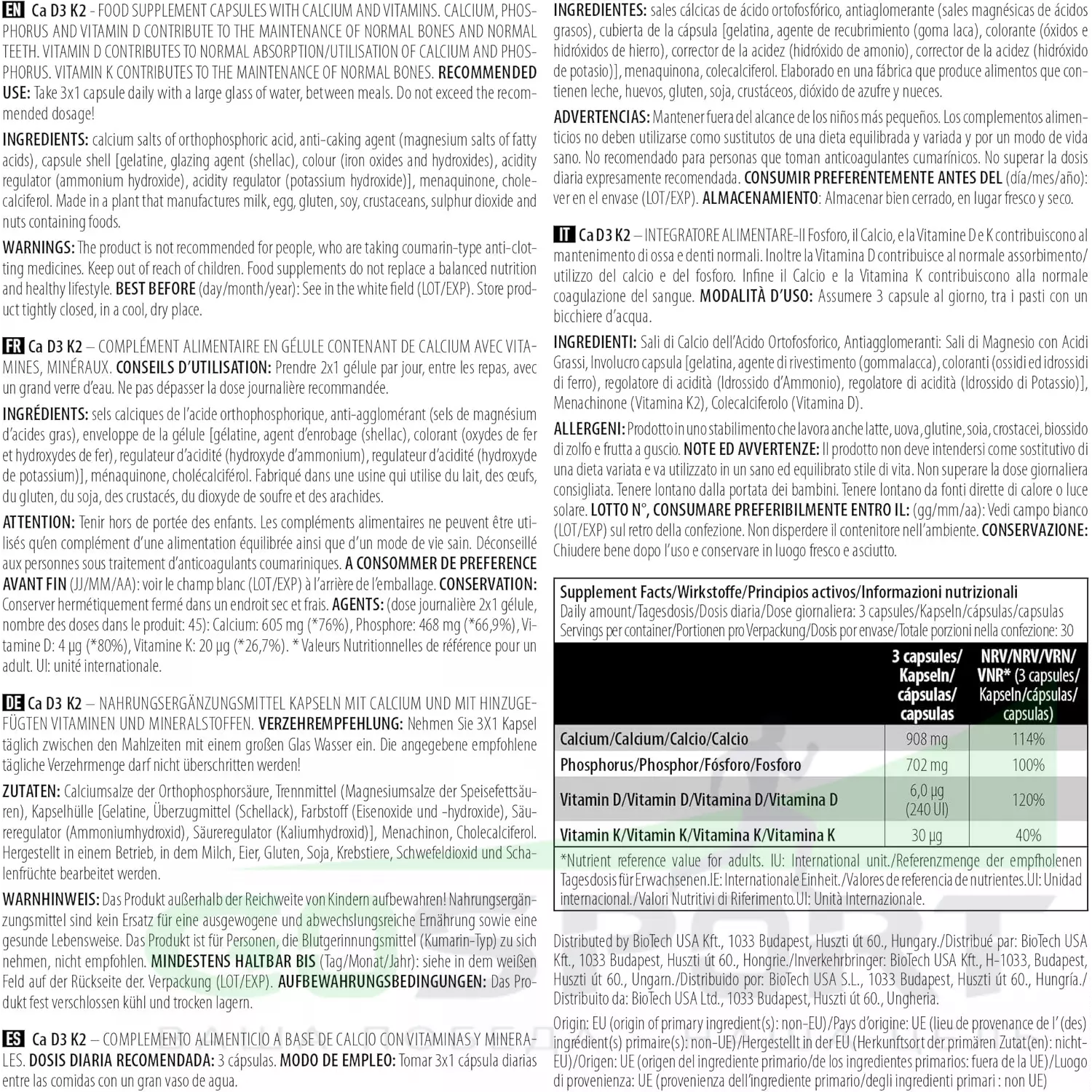 Описание BioTechUSA Ca D3 K2