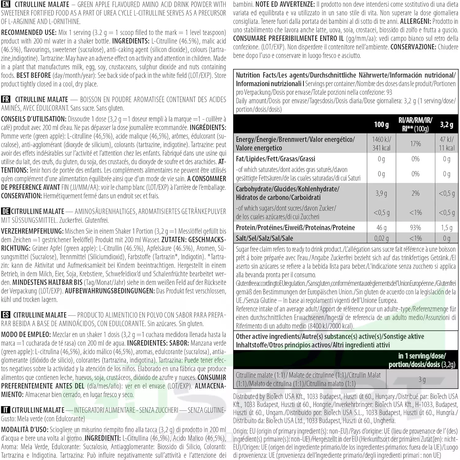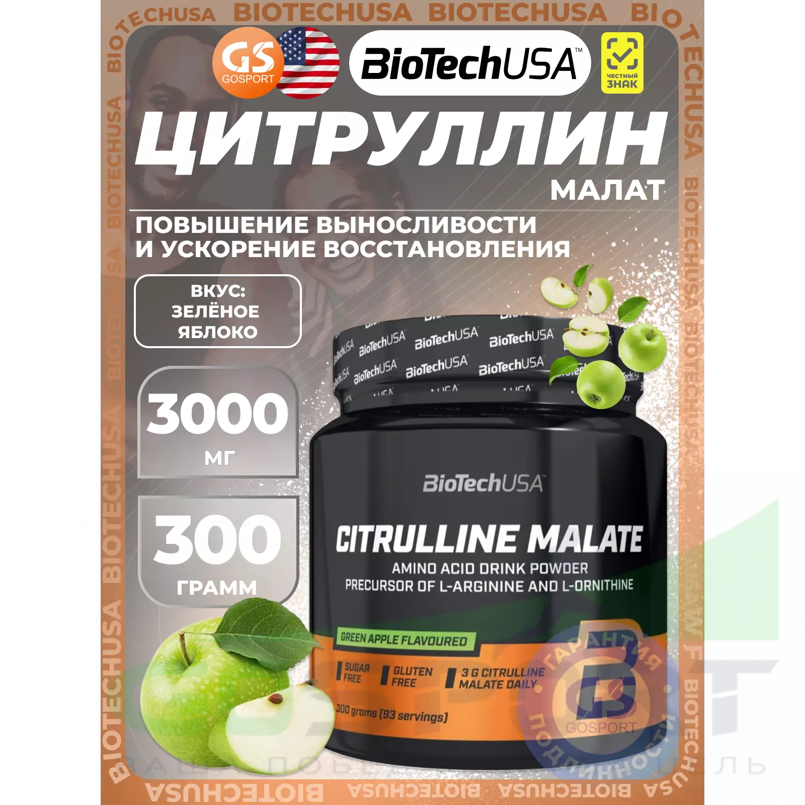 BioTechUSA Citrulline Malate 300 г, Зеленое яблоко — Повышение выносливости и ускорение восстановления