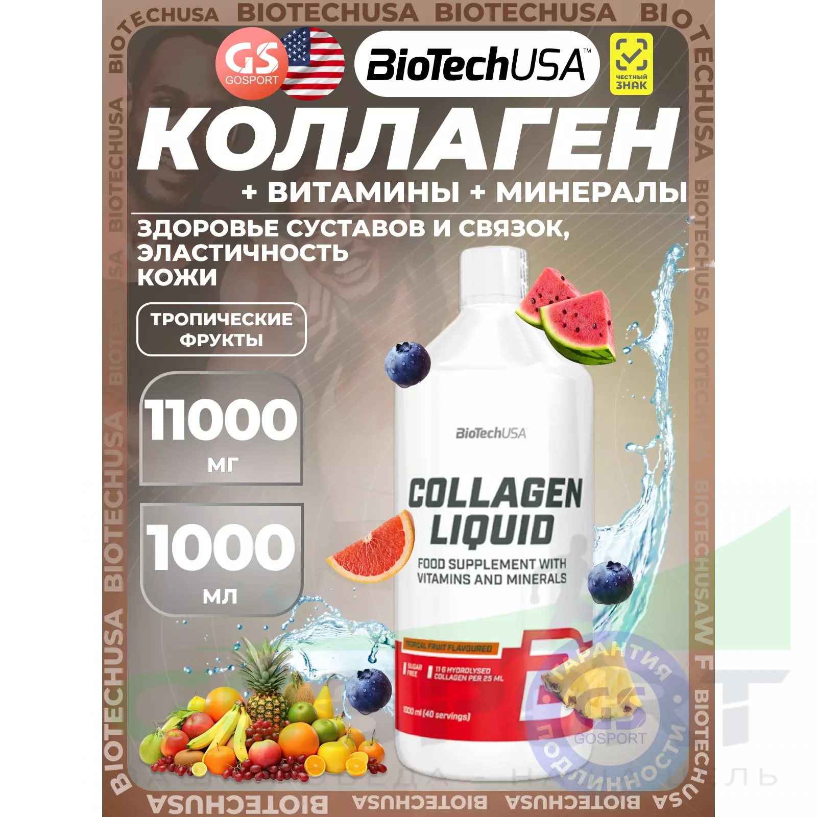 BioTechUSA Collagen Liquid 11000 mg 1000 мл, Тропические фрукты — Здоровье суставов и связок, эластичность кожи