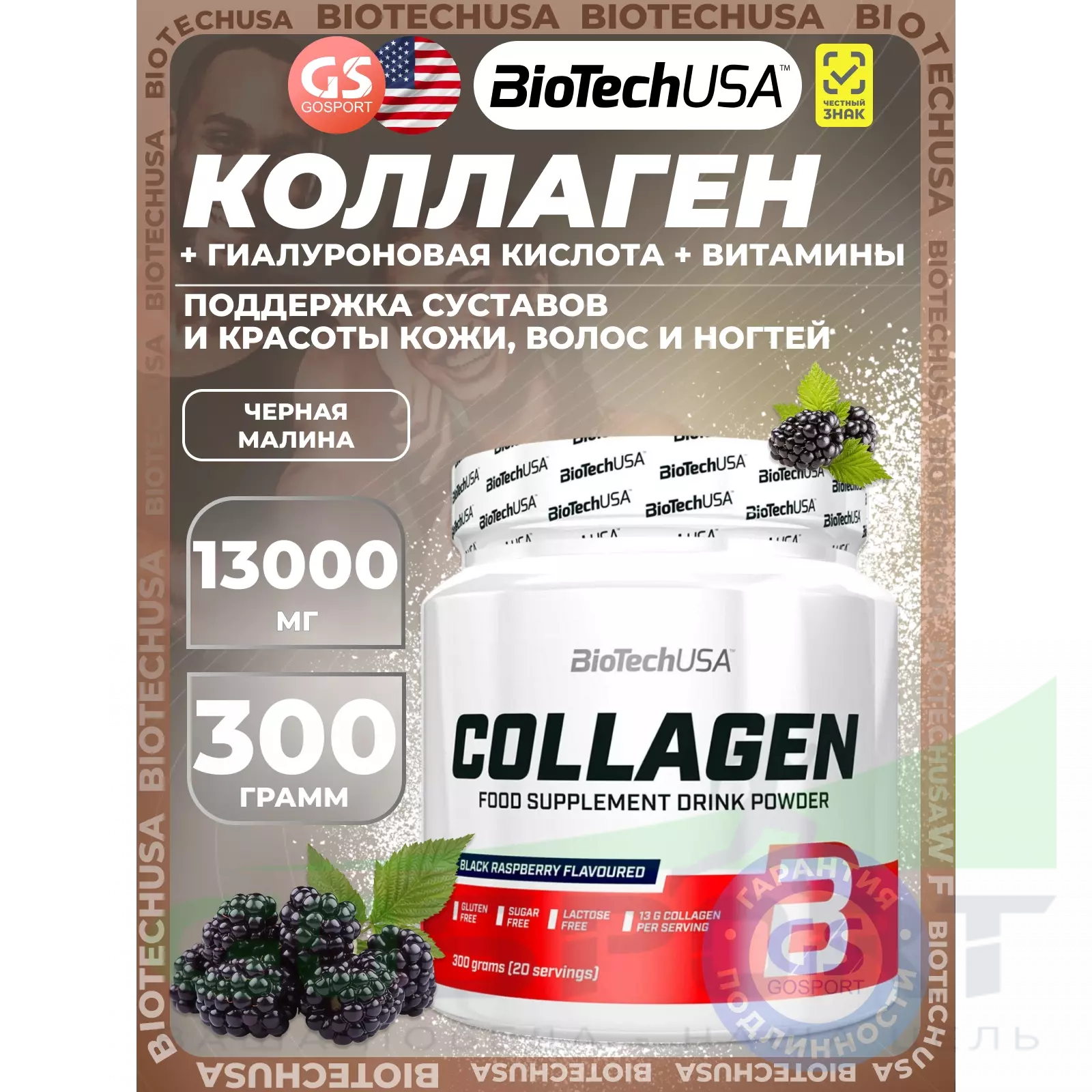 BioTechUSA Collagen 13000 mg 300 г, Черная малина — Поддержка суставов и красоты кожи, волос и ногтей