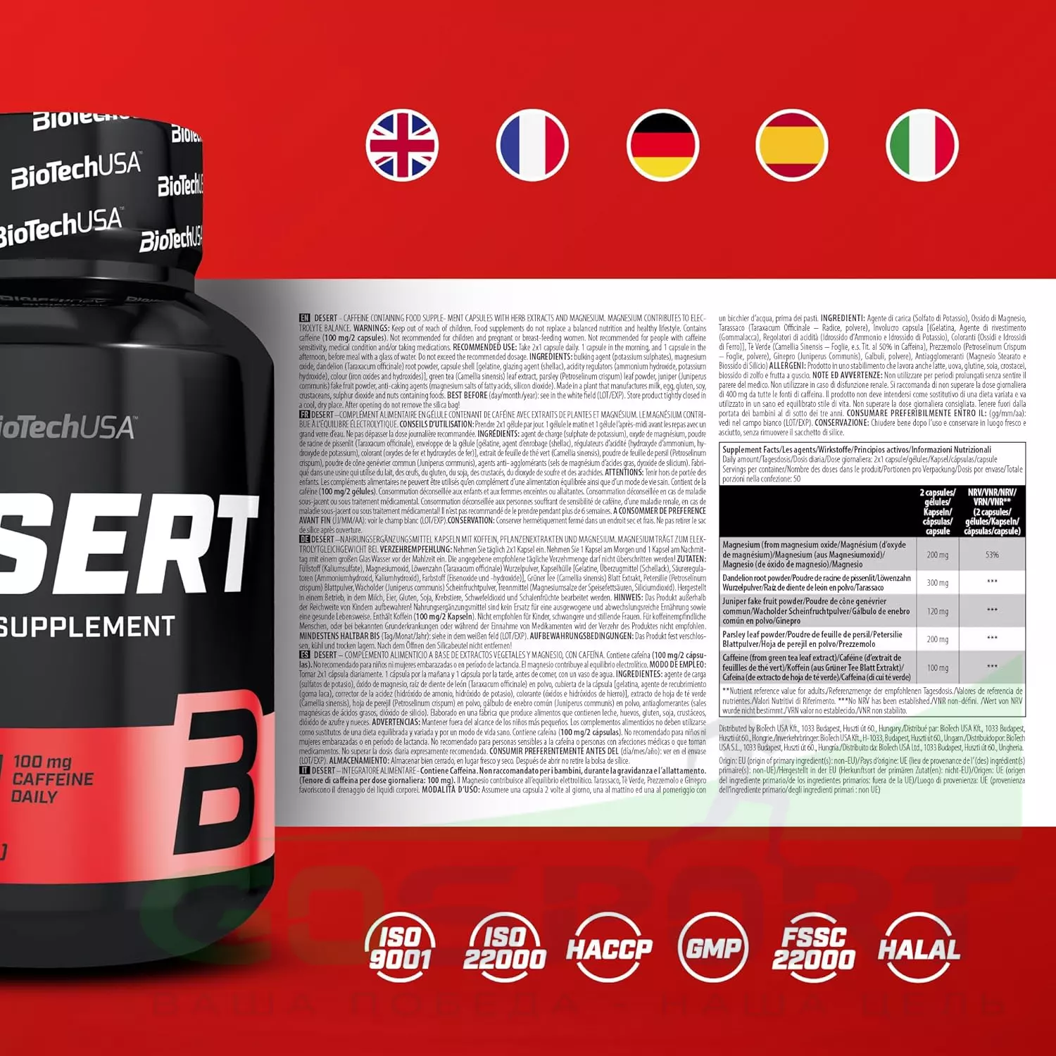 Комплекс BioTechUSA Desert представляет собой жиросжигатель на растительной основе с добавлением минералов и кофеина, разработанный для контроля водного баланса в организме и достижения рельефной мускулатуры.