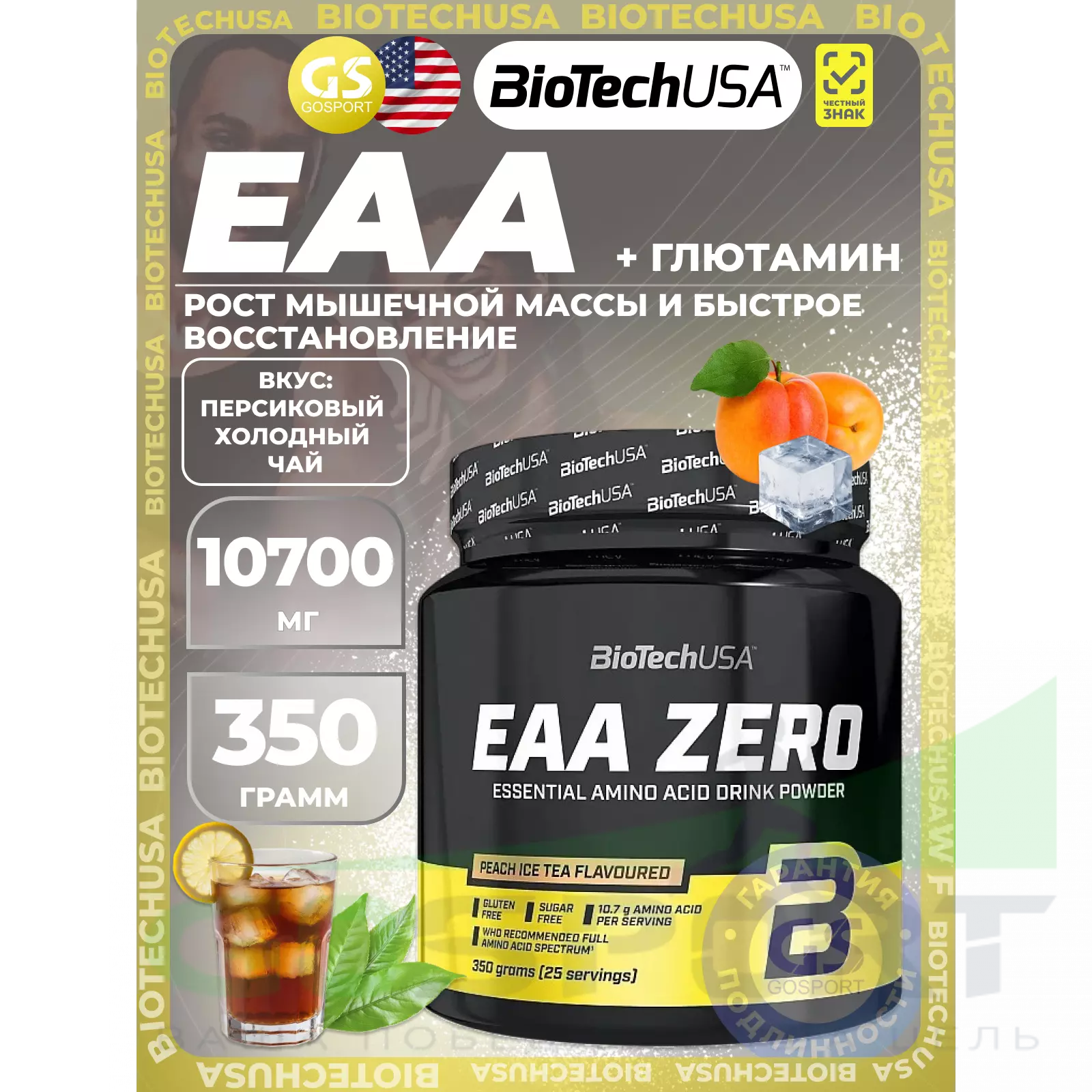 BioTechUSA EAA Zero 350 г, Персиковый холодный чай — Рост мышечной массы и быстрое восстановление