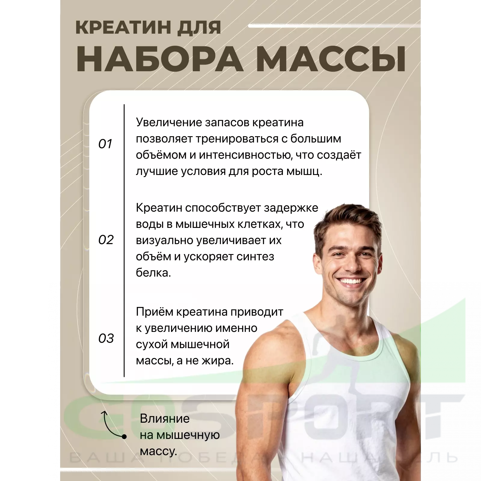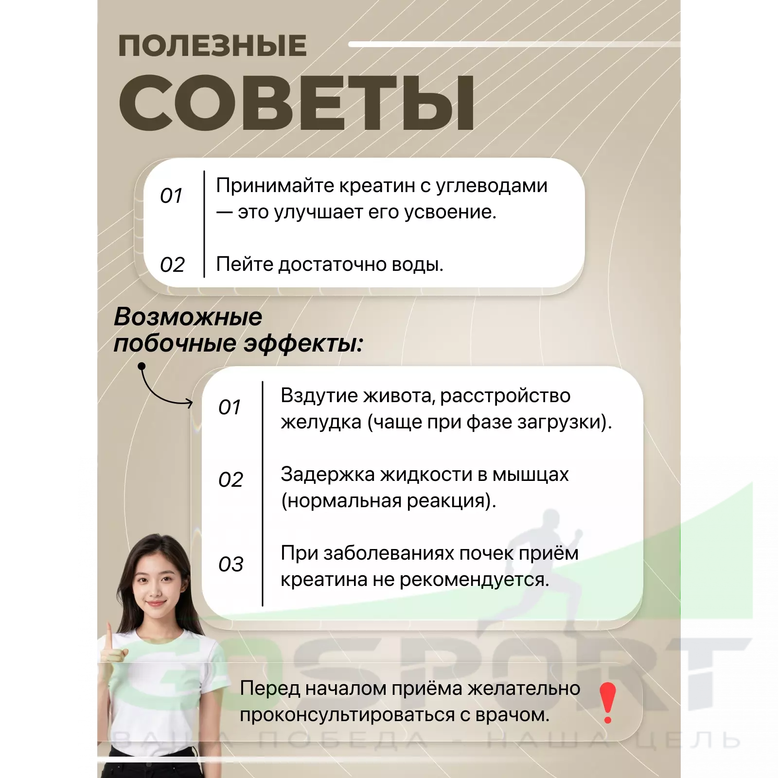 | Ингредиенты: 100% Микронизированный креатин моногидрат фармацевтического класса (200 mesh) | |
