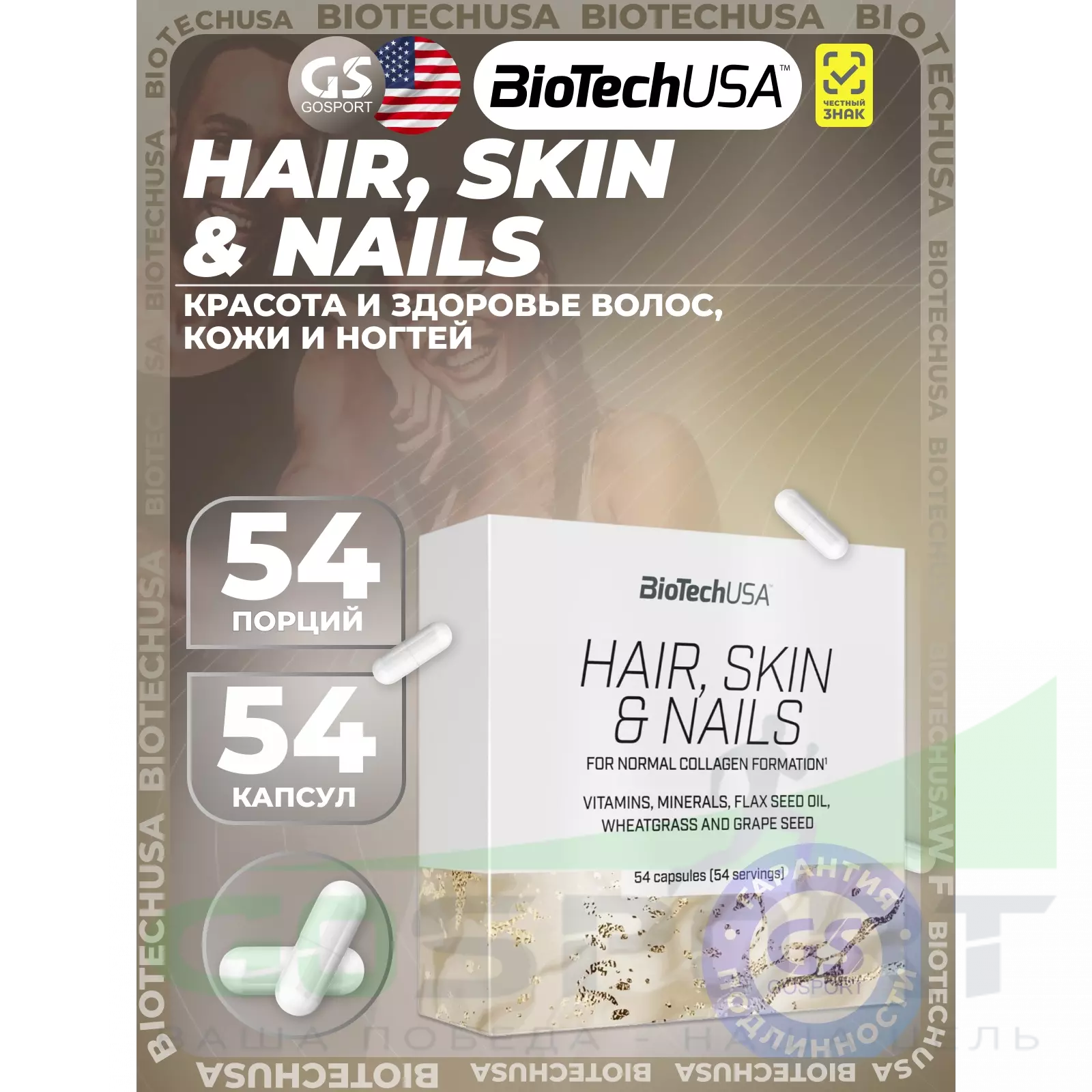 BioTechUSA Hair, Skin & Nails 54 капсулы — Красота и здоровье волос, кожи и ногтей